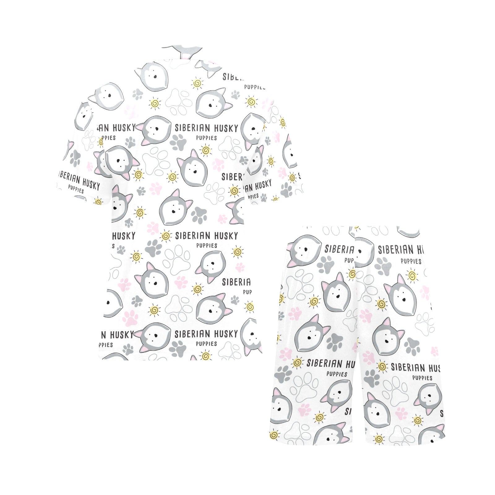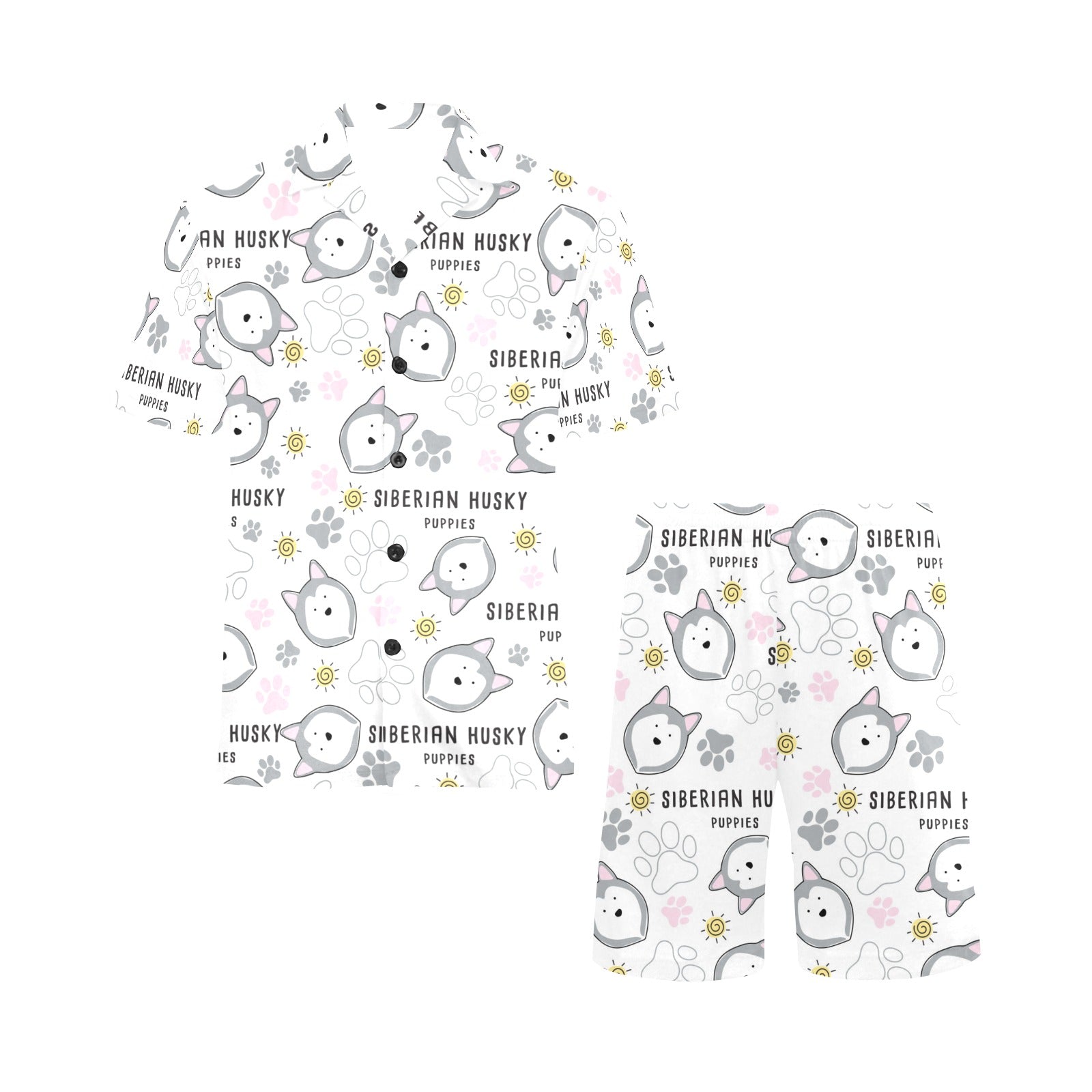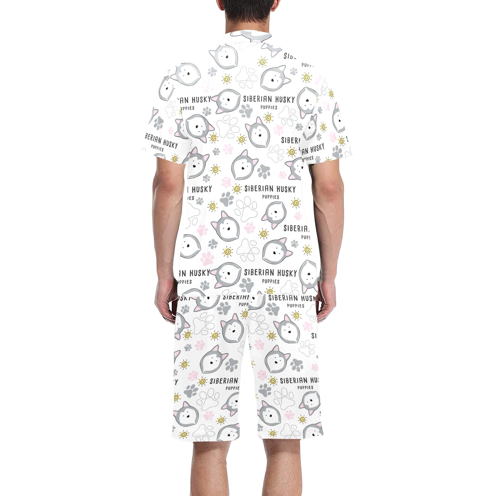 Siberian Husky design pattern Men's V-Neck Short Pajama Set