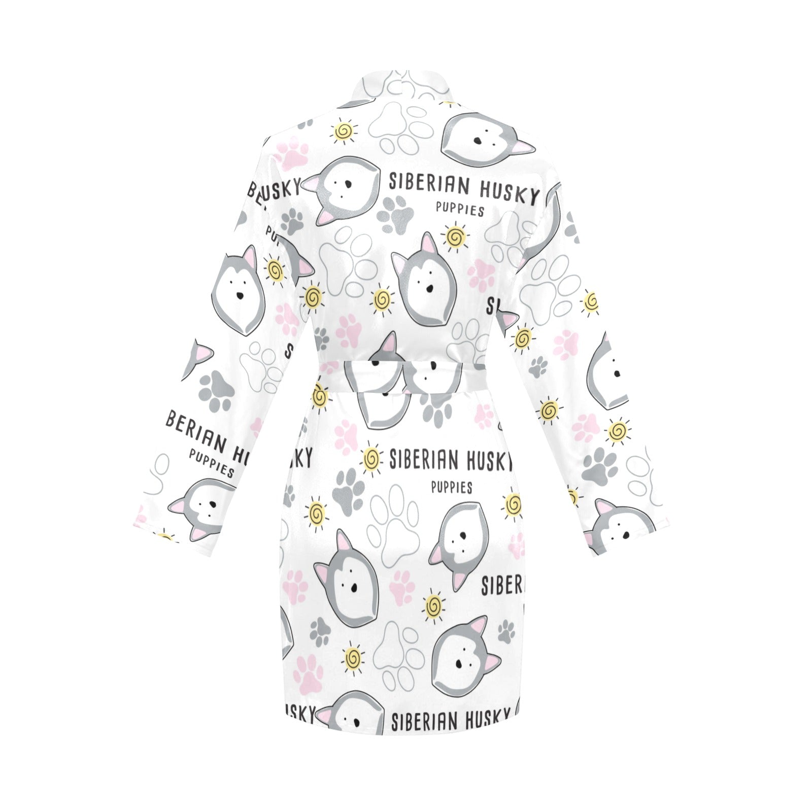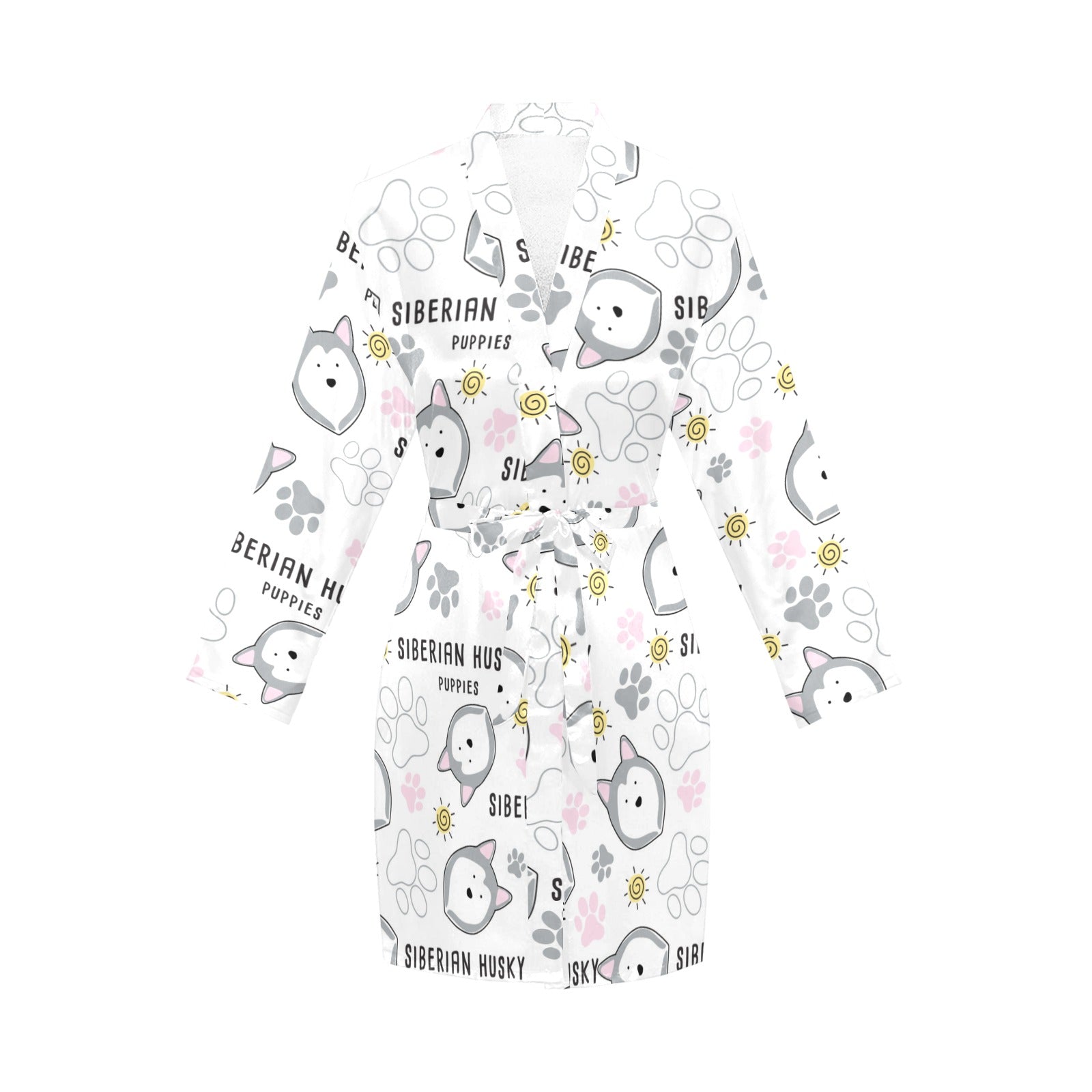 Siberian Husky design pattern Women's Long Sleeve Belted Night Robe