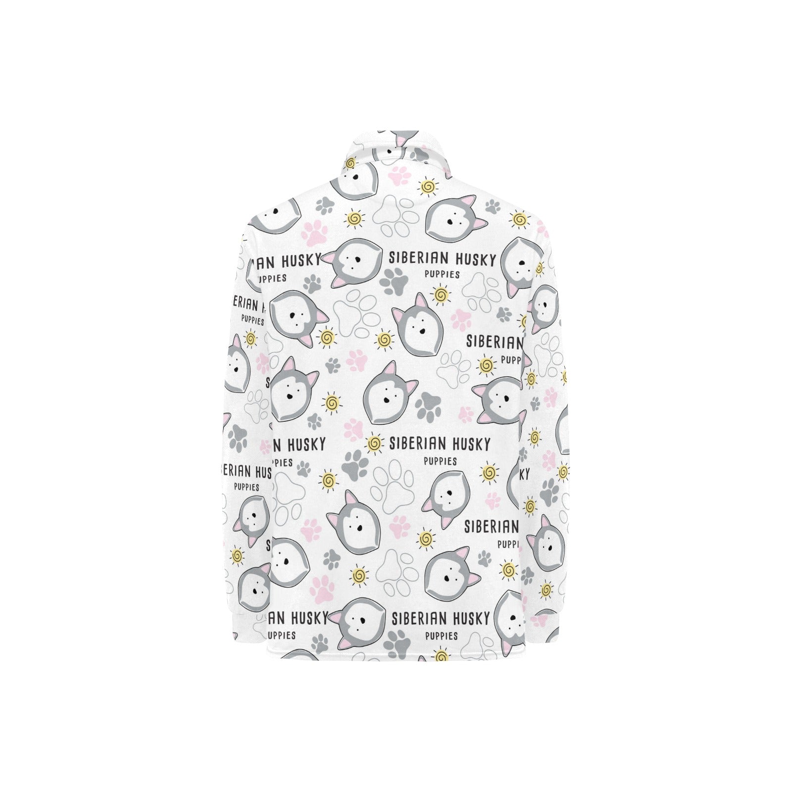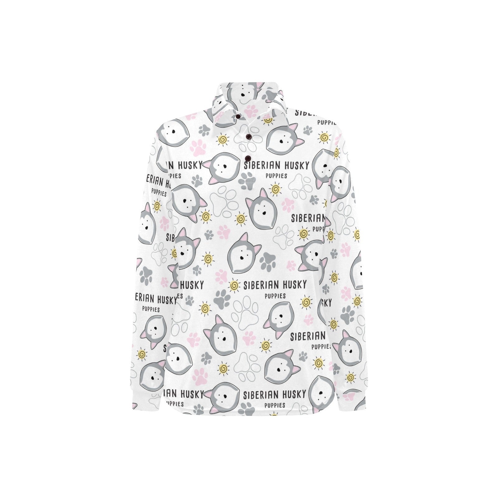 Siberian Husky design pattern Women's Long Sleeve Polo Shirt