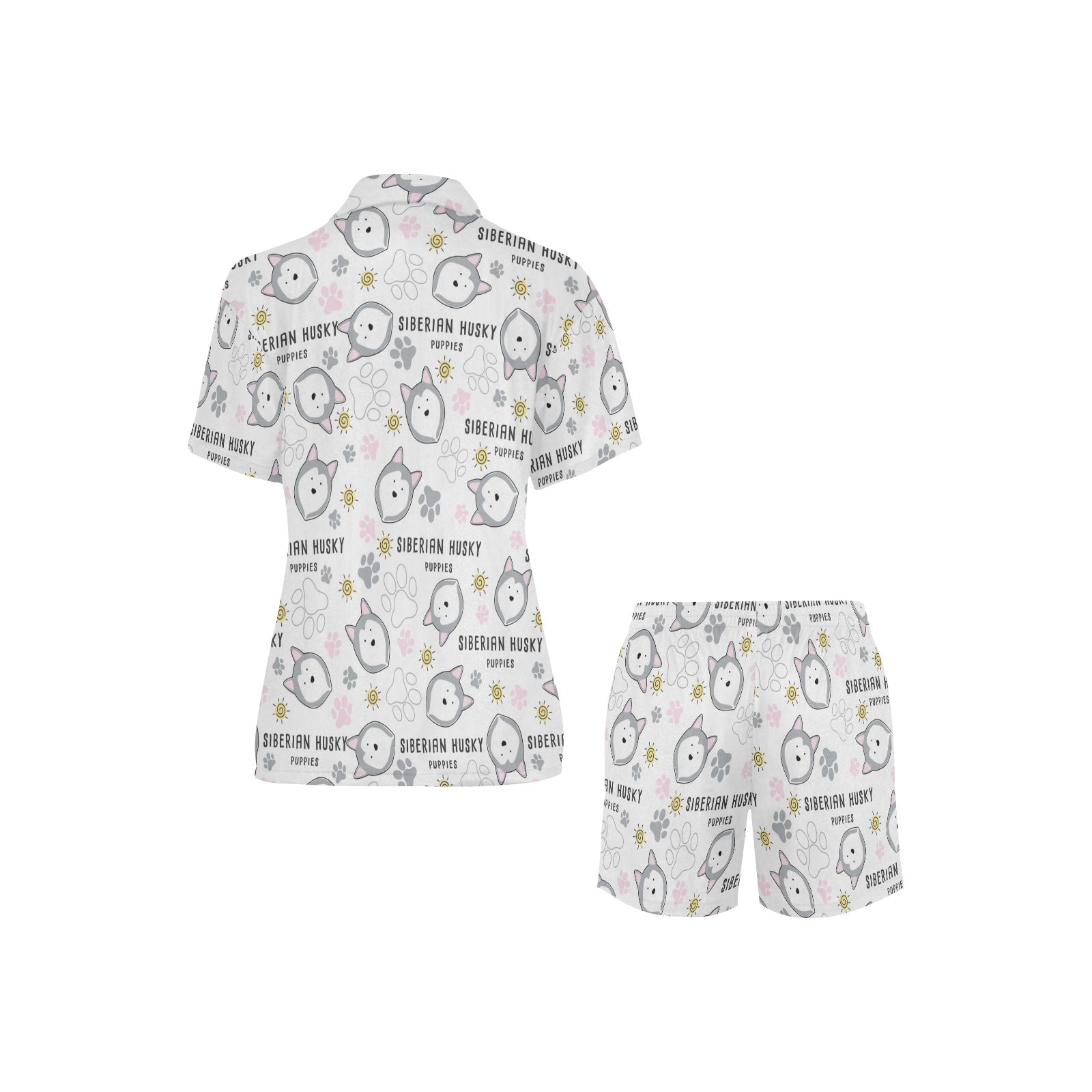 Siberian Husky design pattern Women's V-Neck Short Pajama Set