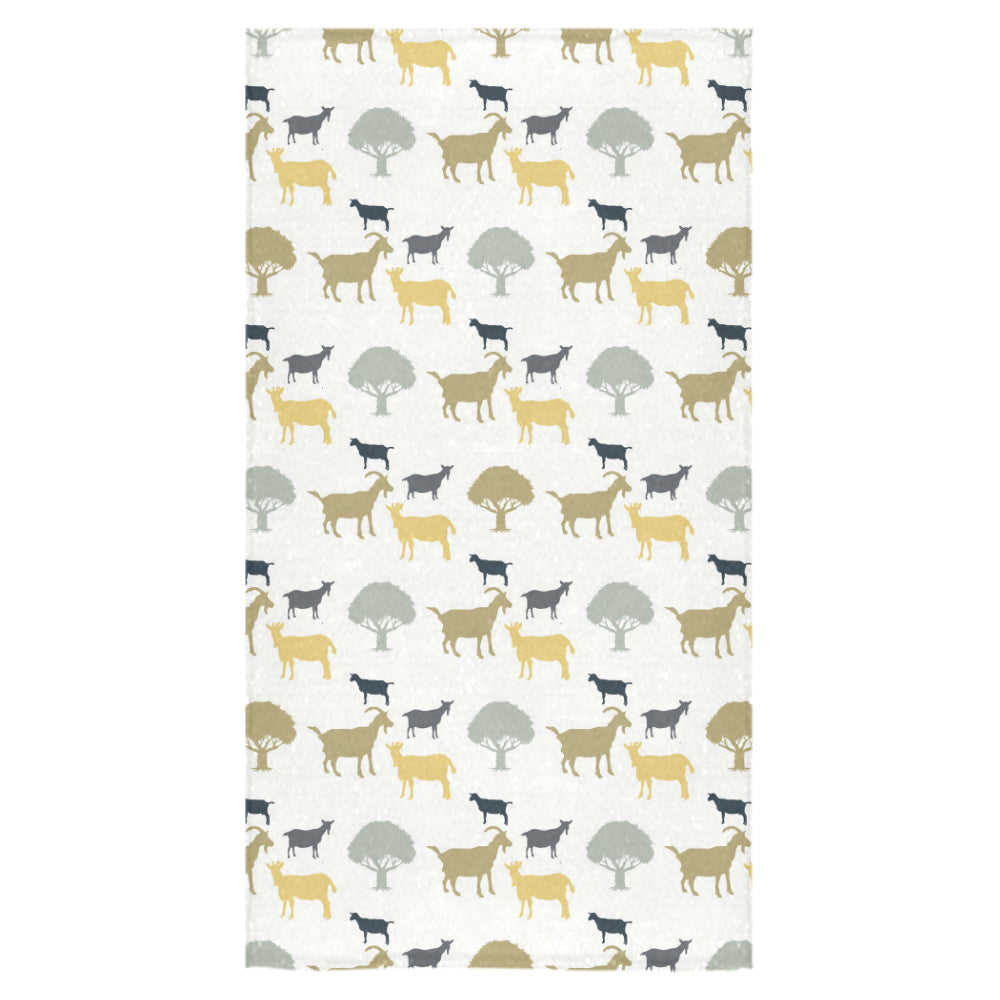 Silhouettes of goat and tree pattern Bath Towel 30"x56" is a uniqued design and limited item. It made to order, hand printed, and sewn with love in our factory.