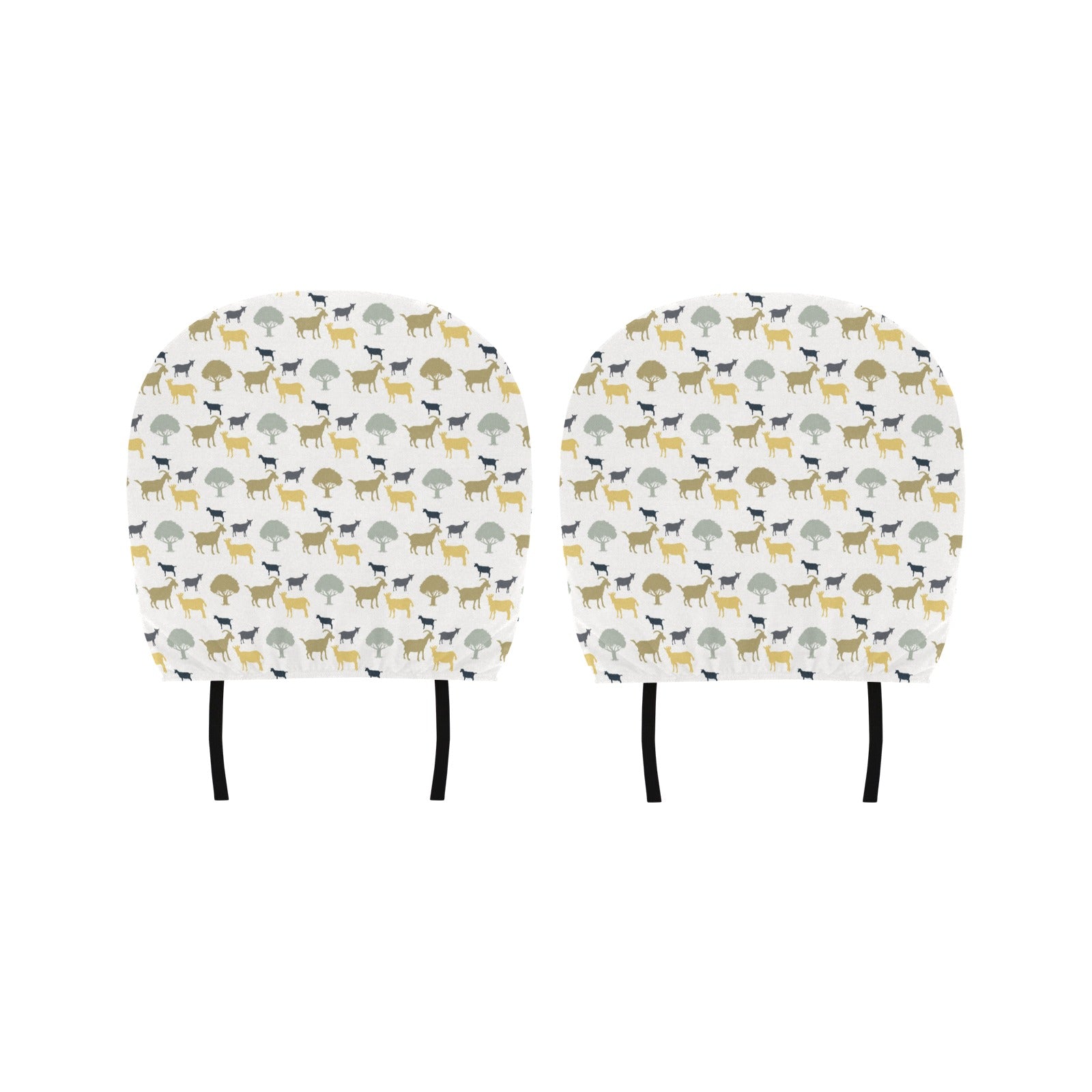 Silhouettes of goat and tree pattern Car Headrest Cover