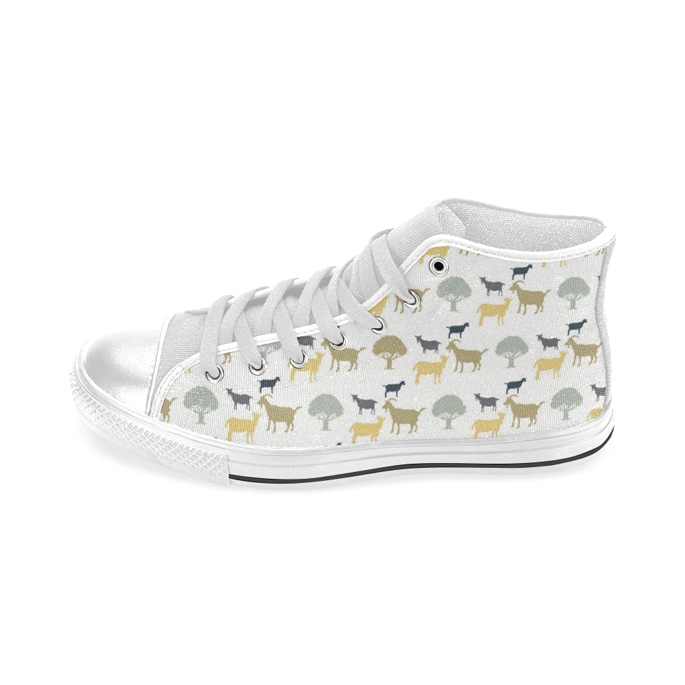 Silhouettes of goat and tree pattern Men's High Top Canvas Shoes White