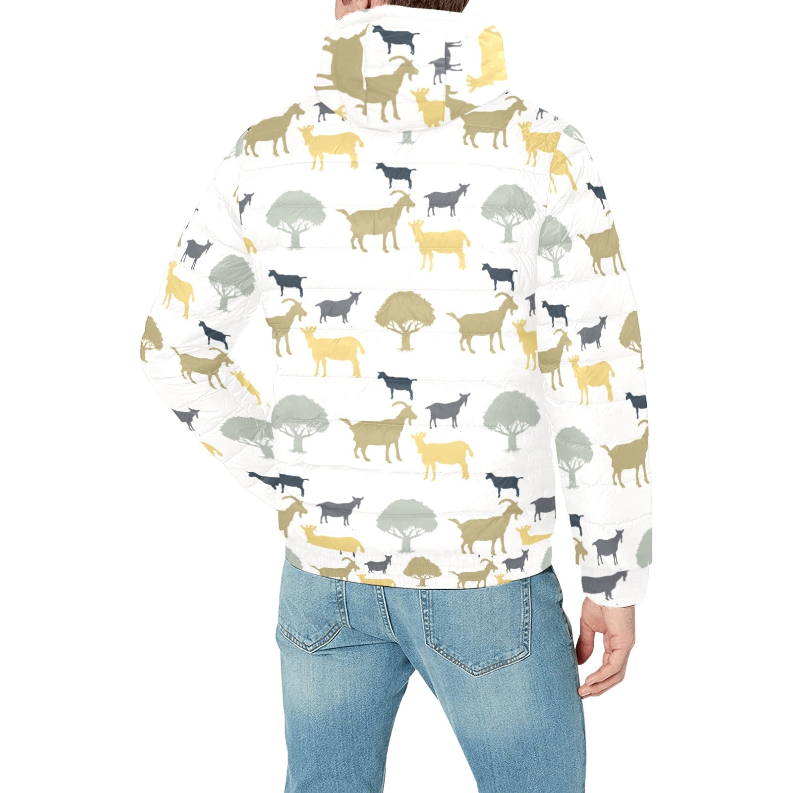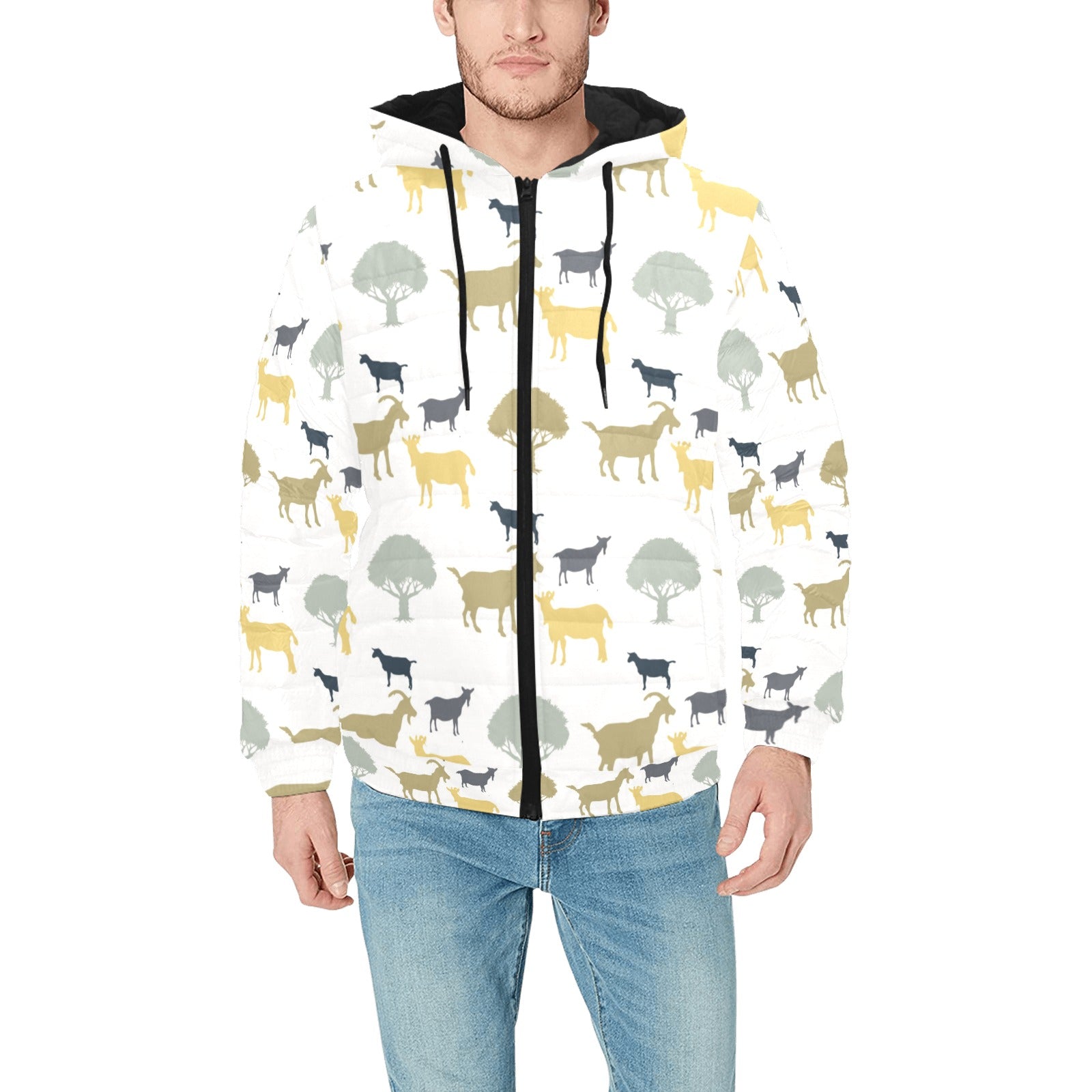 Silhouettes of goat and tree pattern Men's Padded Hooded Jacket