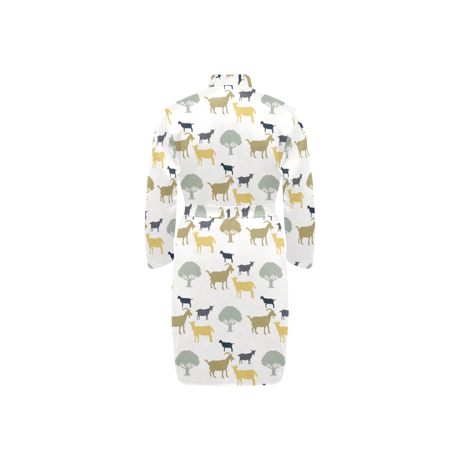Silhouettes of goat and tree pattern Men's Long Sleeve Belted Night Robe