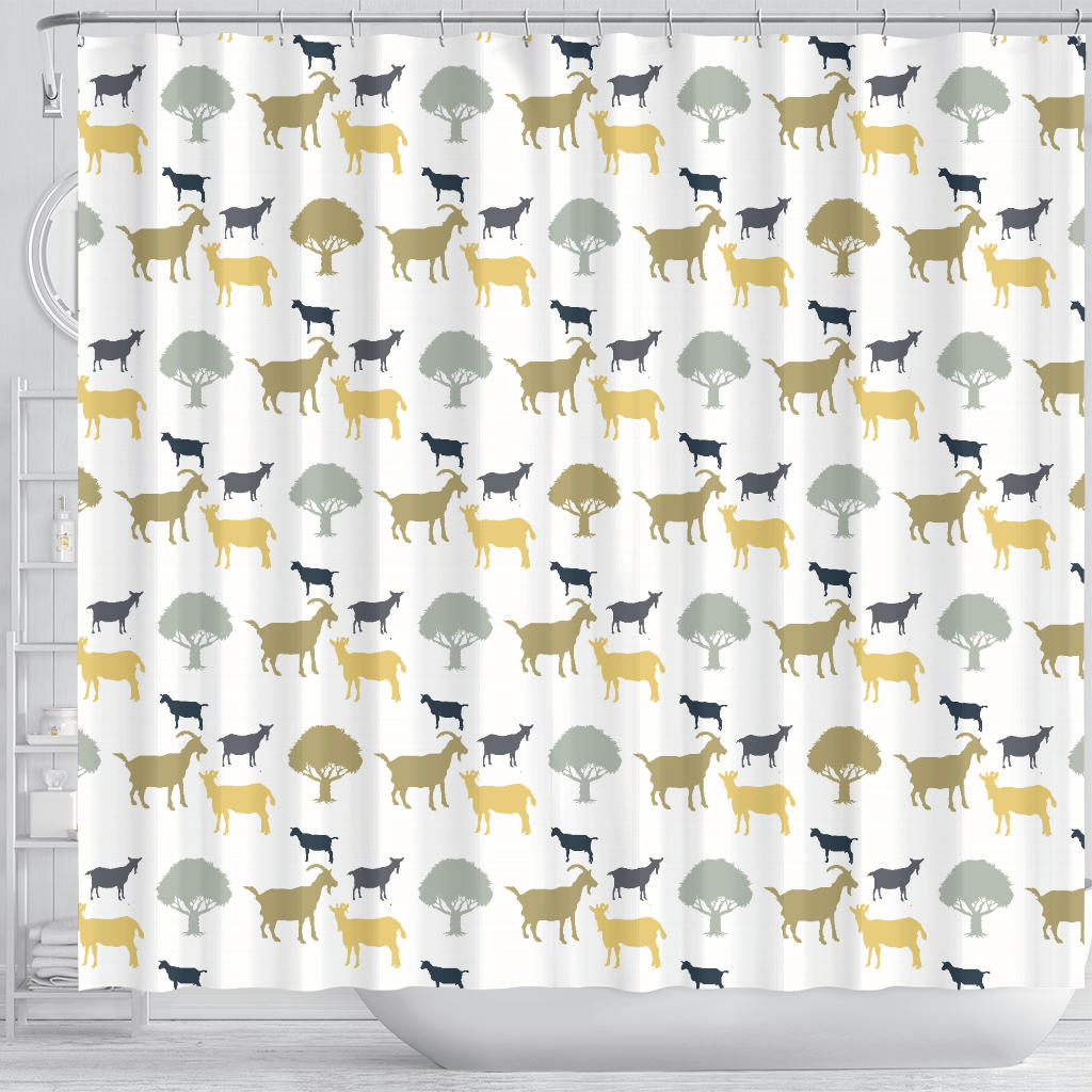 Silhouettes Of Goat And Tree Pattern Shower Curtain Fulfilled In US