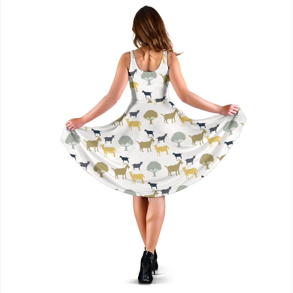 Silhouettes Of Goat And Tree Pattern Sleeveless Midi Dress