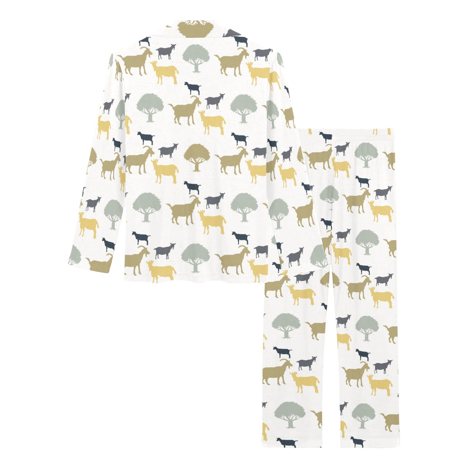Silhouettes of goat and tree pattern Women's Long Pajama Set