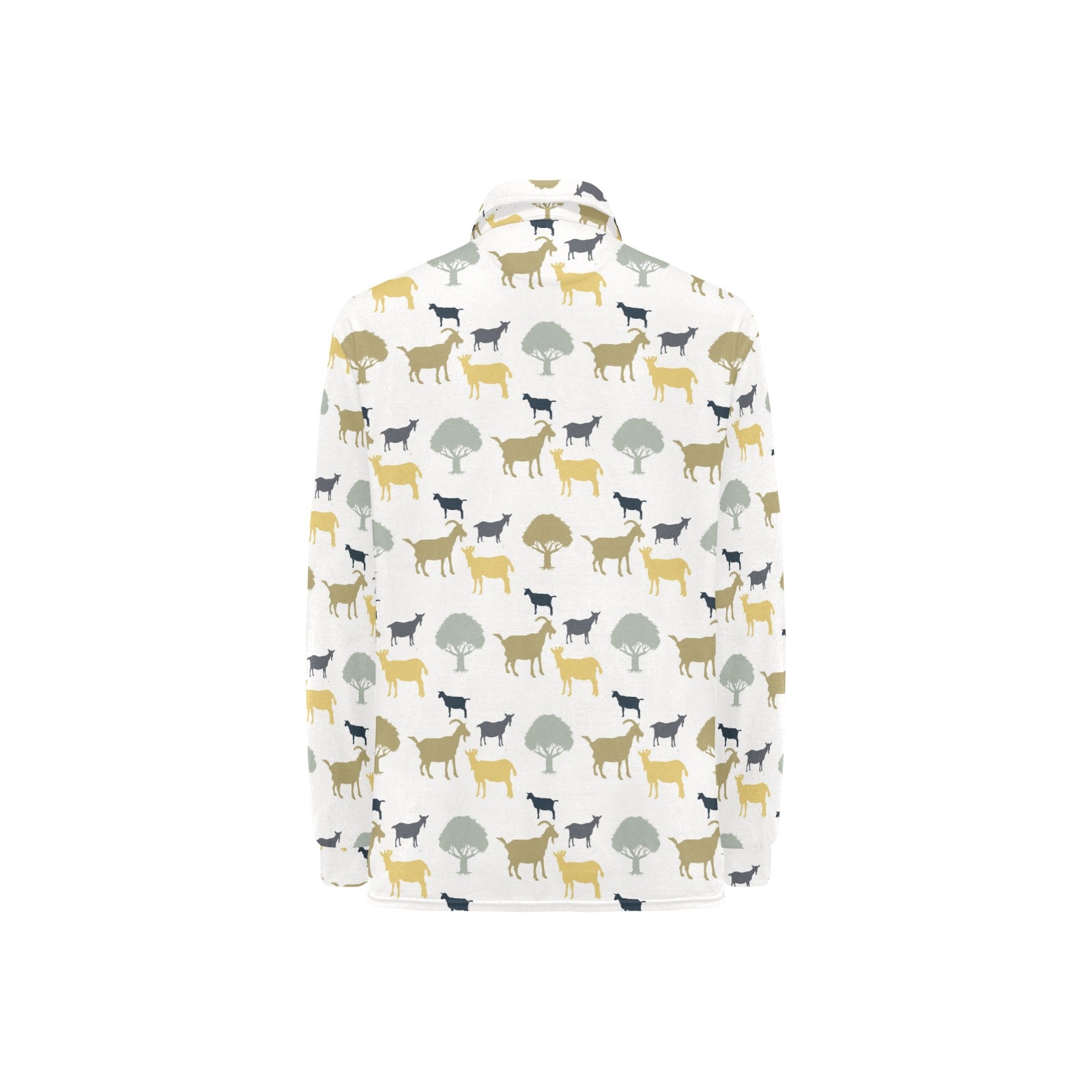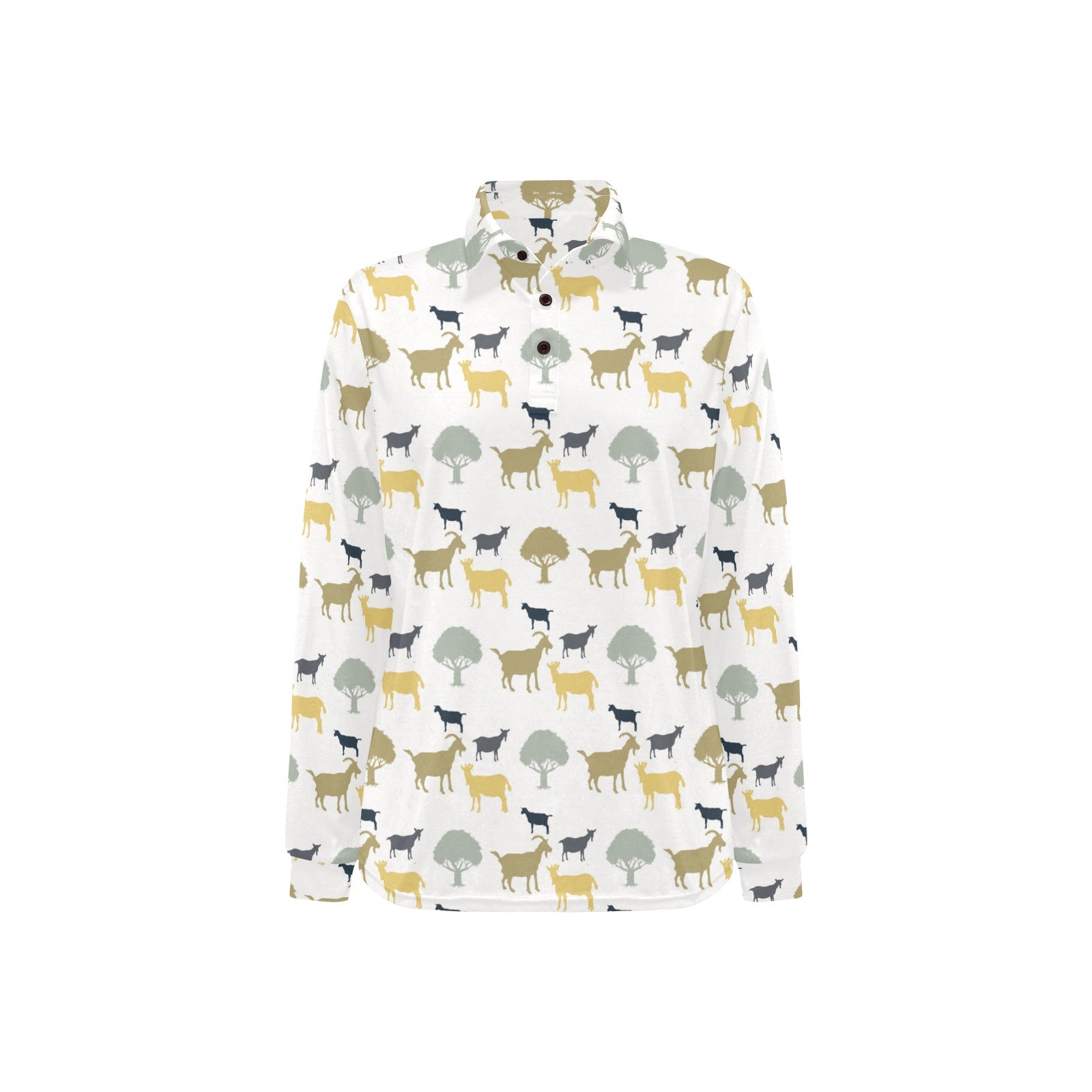 Silhouettes of goat and tree pattern Women's Long Sleeve Polo Shirt