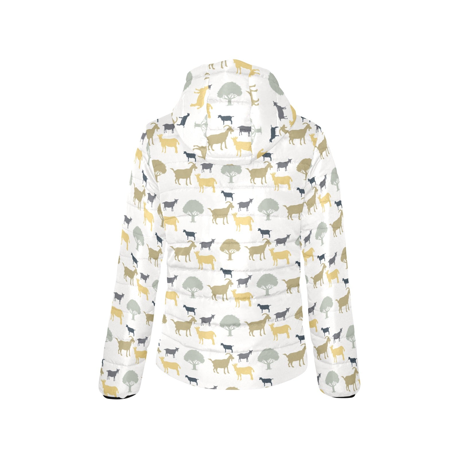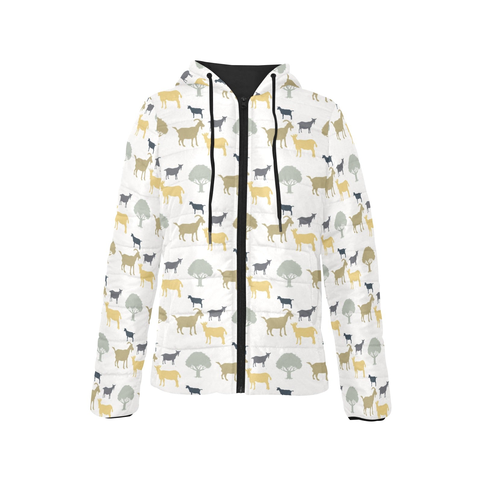 Silhouettes of goat and tree pattern Women's Padded Hooded Jacket