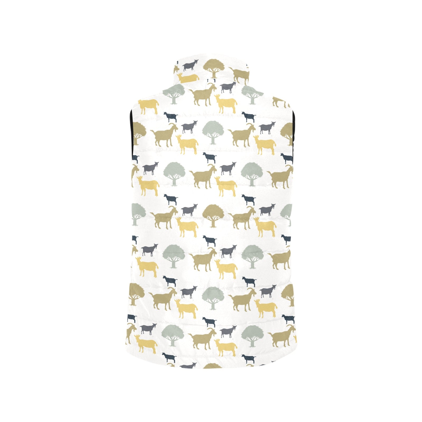 Silhouettes of goat and tree pattern Women's Padded Vest