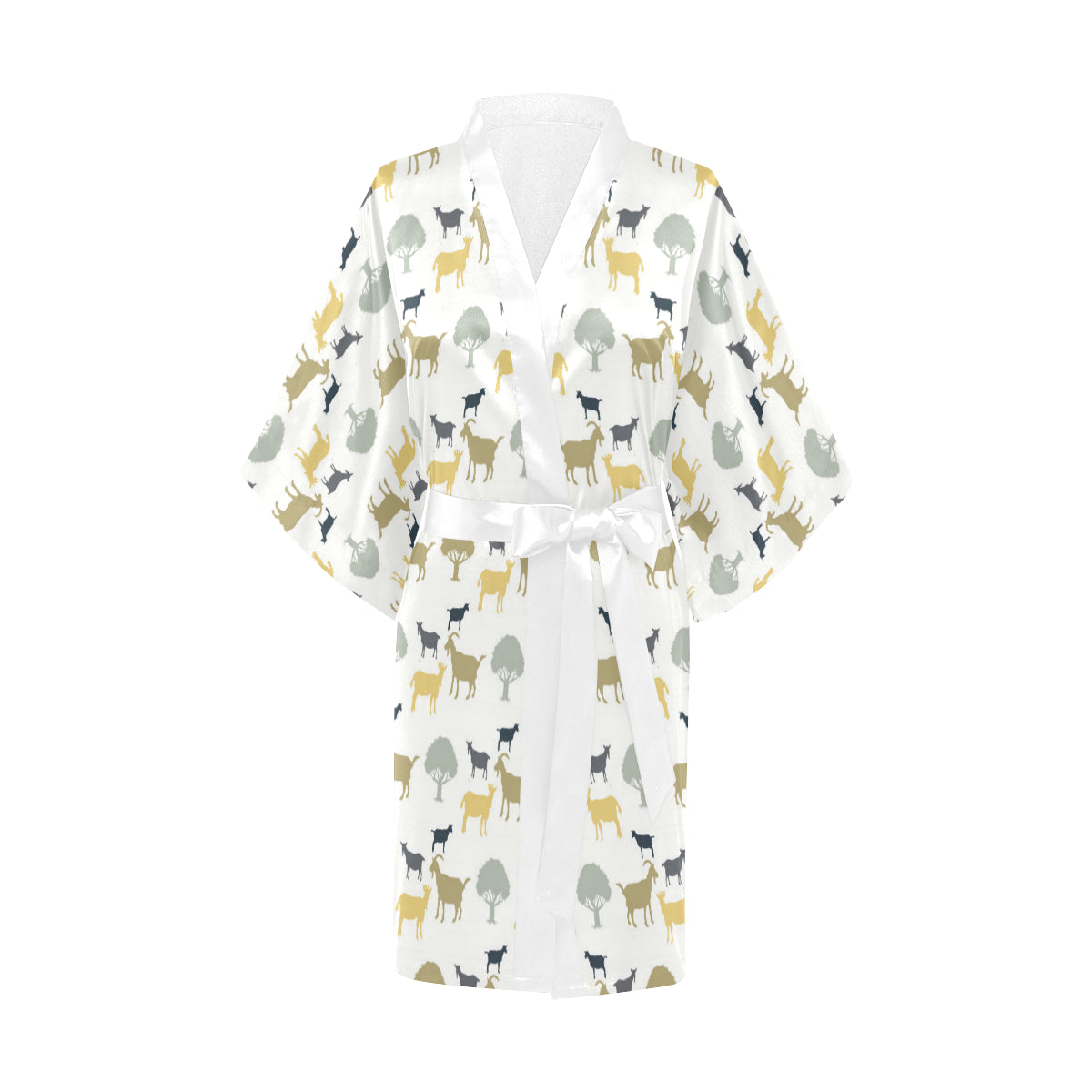 Silhouettes of goat and tree pattern Women's Short Kimono Robe is a uniqued design and limited item. It made to order, hand printed, and sewn with love in our factory.