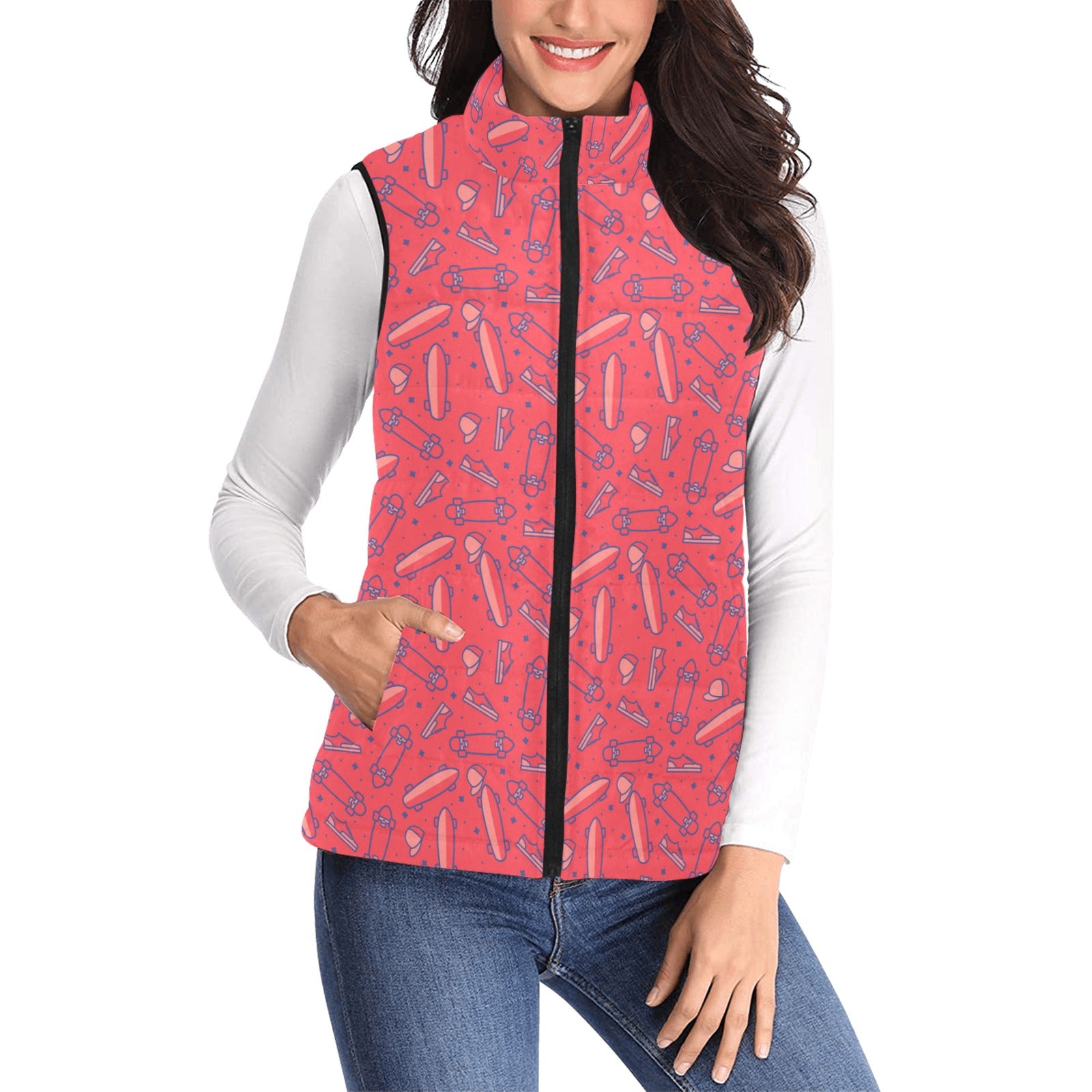 Skate Board Pattern Print Design 01 Women's Padded Vest