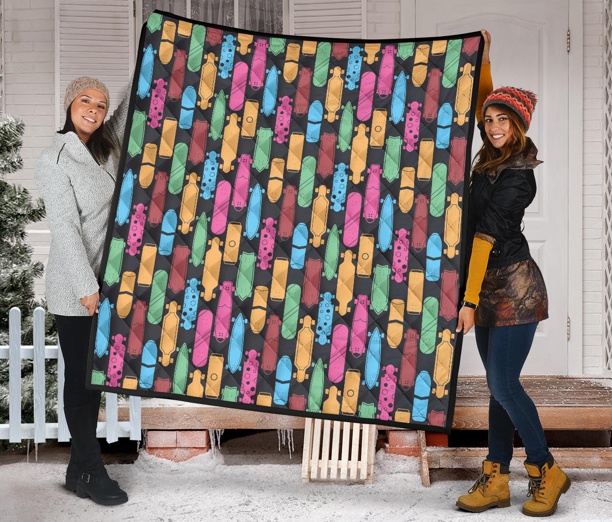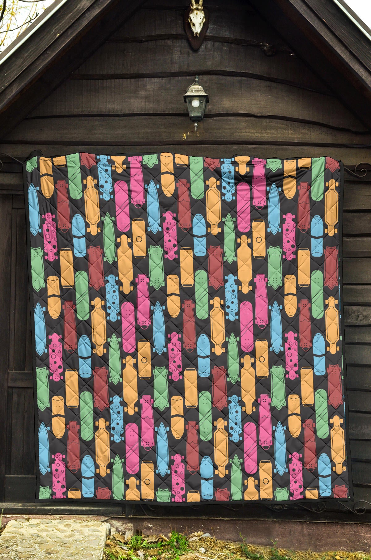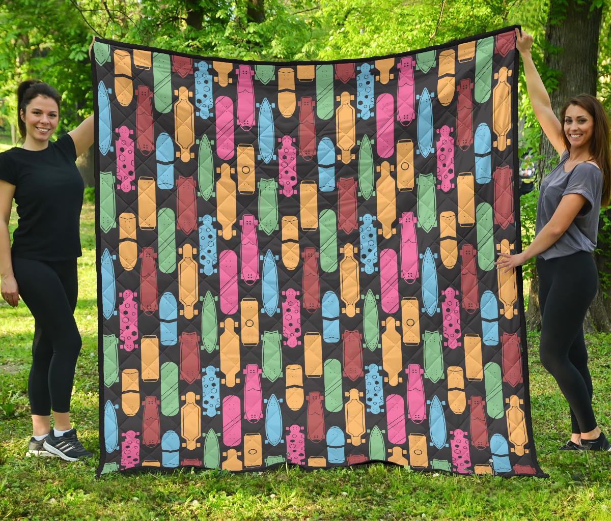 Skate Board Pattern Print Design 02 Premium Quilt is a uniqued design and limited item. It made to order, hand printed, and sewn with love in our factory.