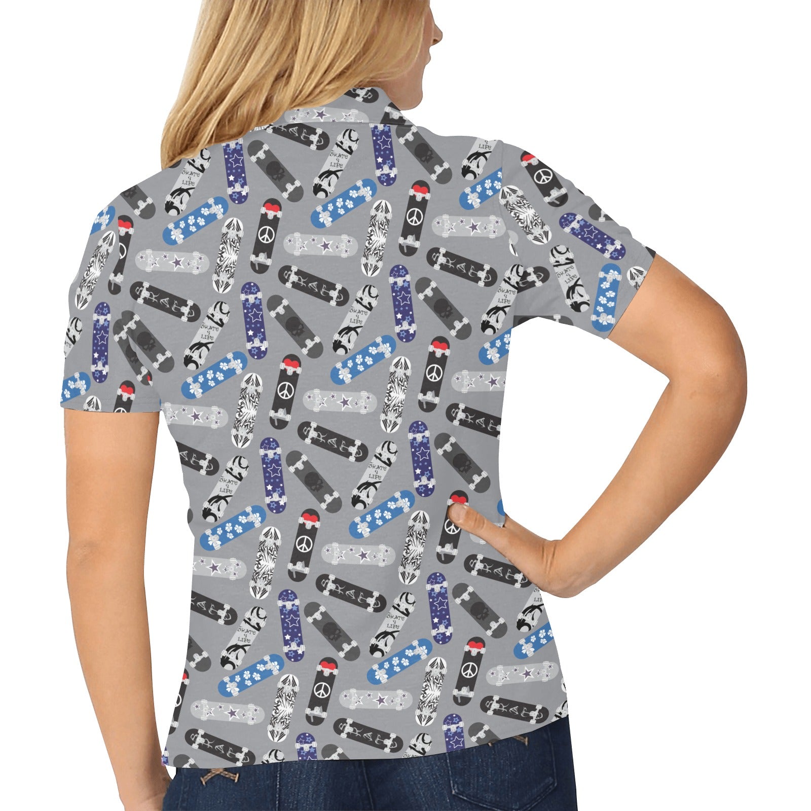 Skate Board Pattern Print Design 03 Women's All Over Print Polo Shirt
