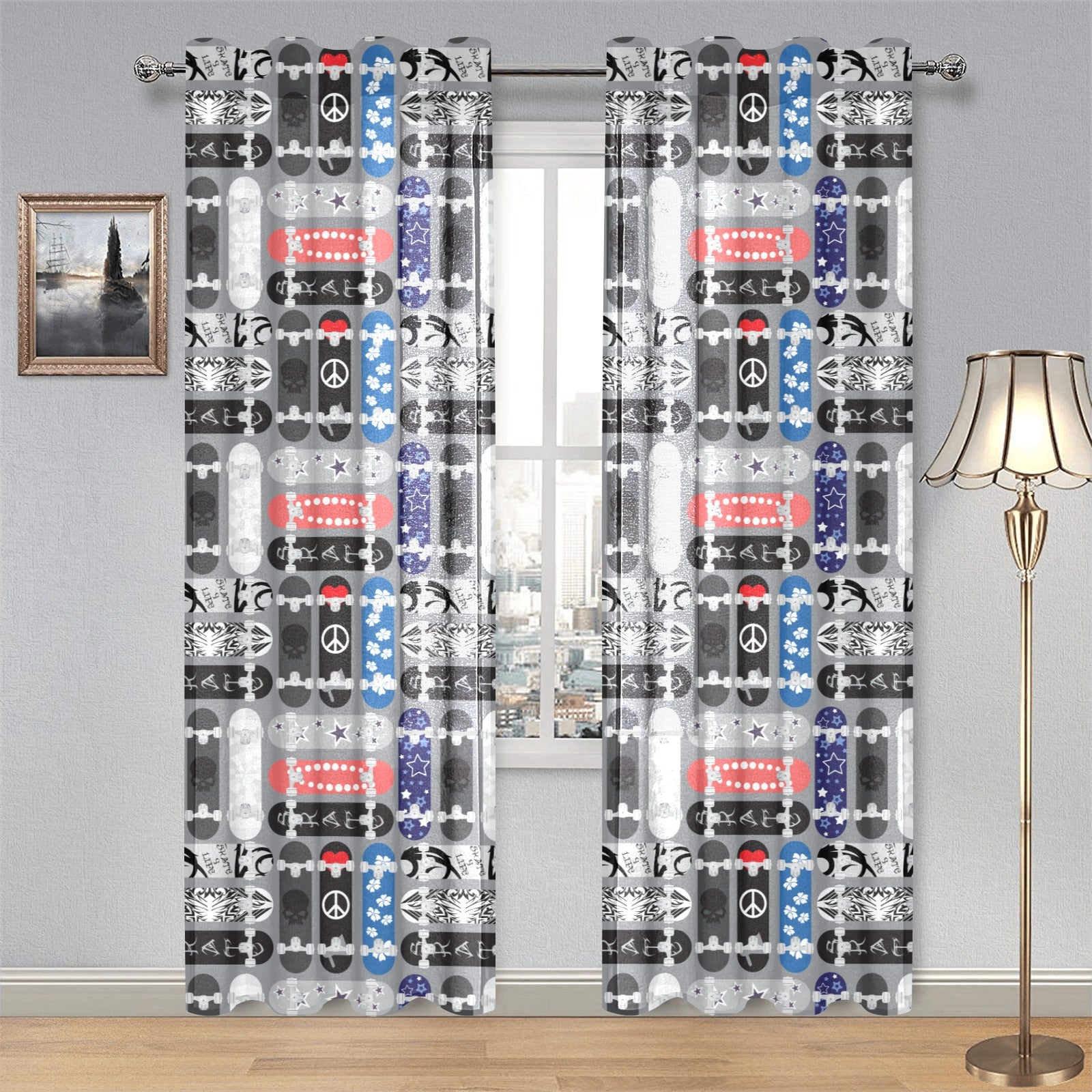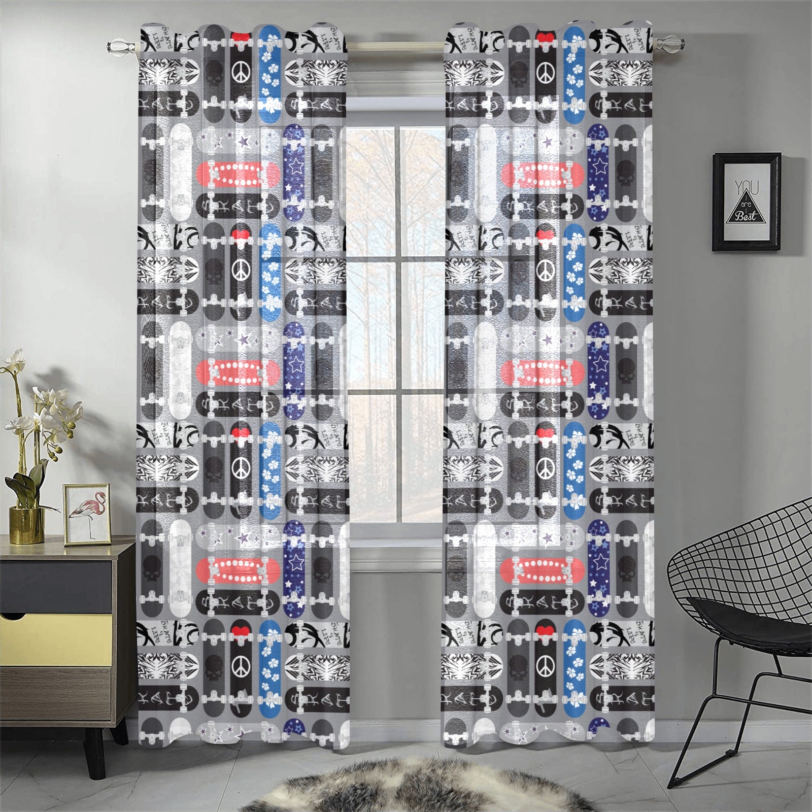 Skate Board Pattern Print Design 04 Gauze Curtain
