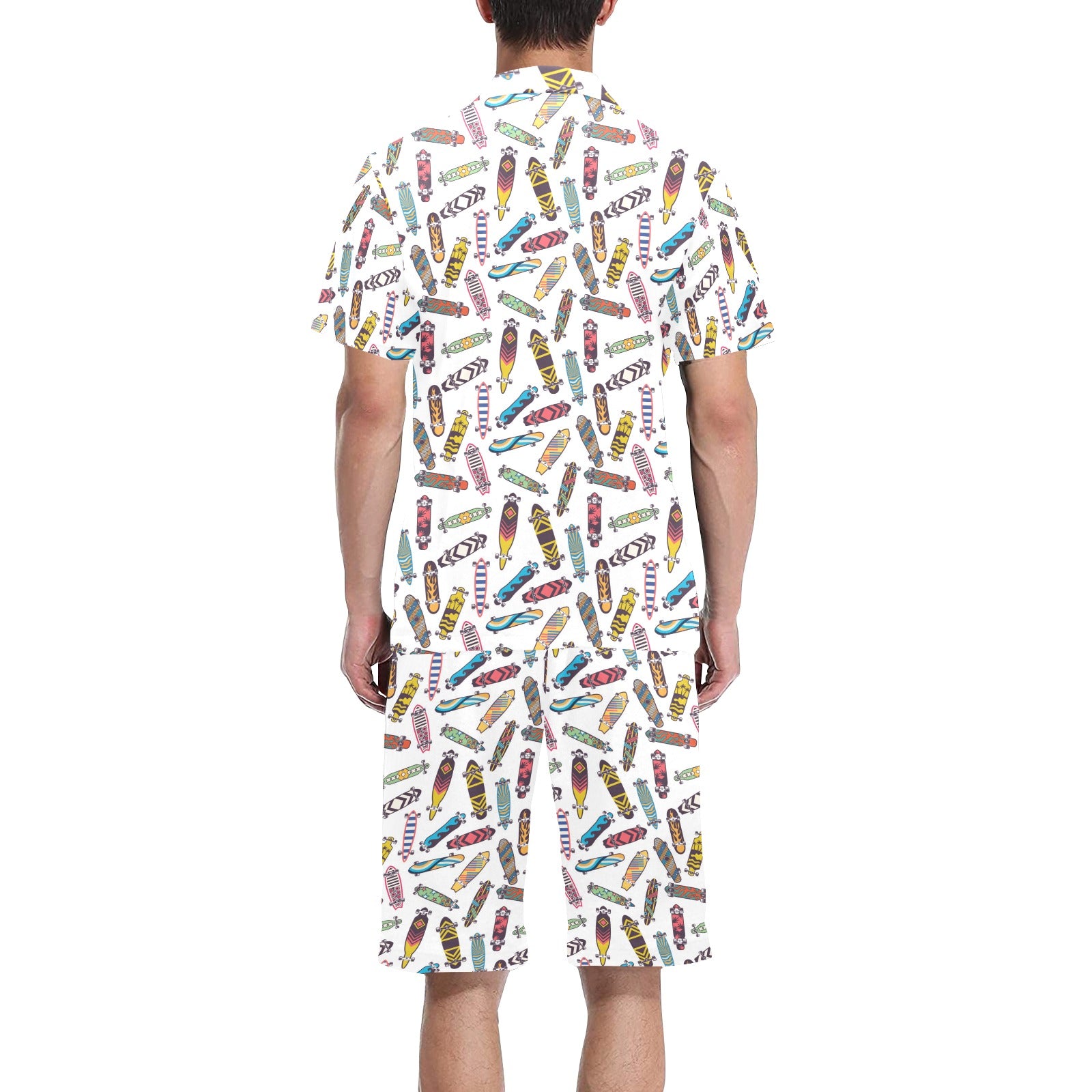Skate Board Pattern Print Design 05 Men's V-Neck Short Pajama Set