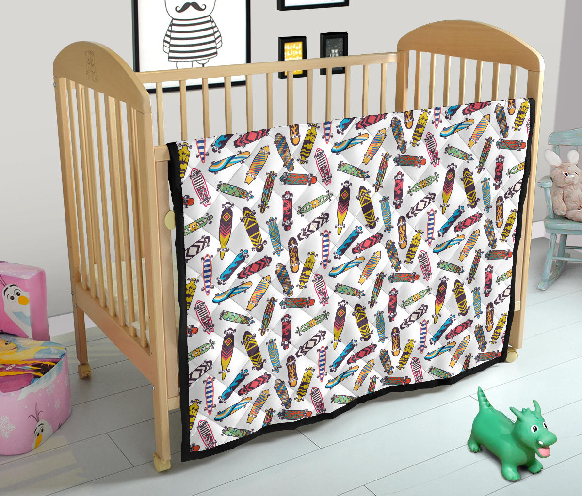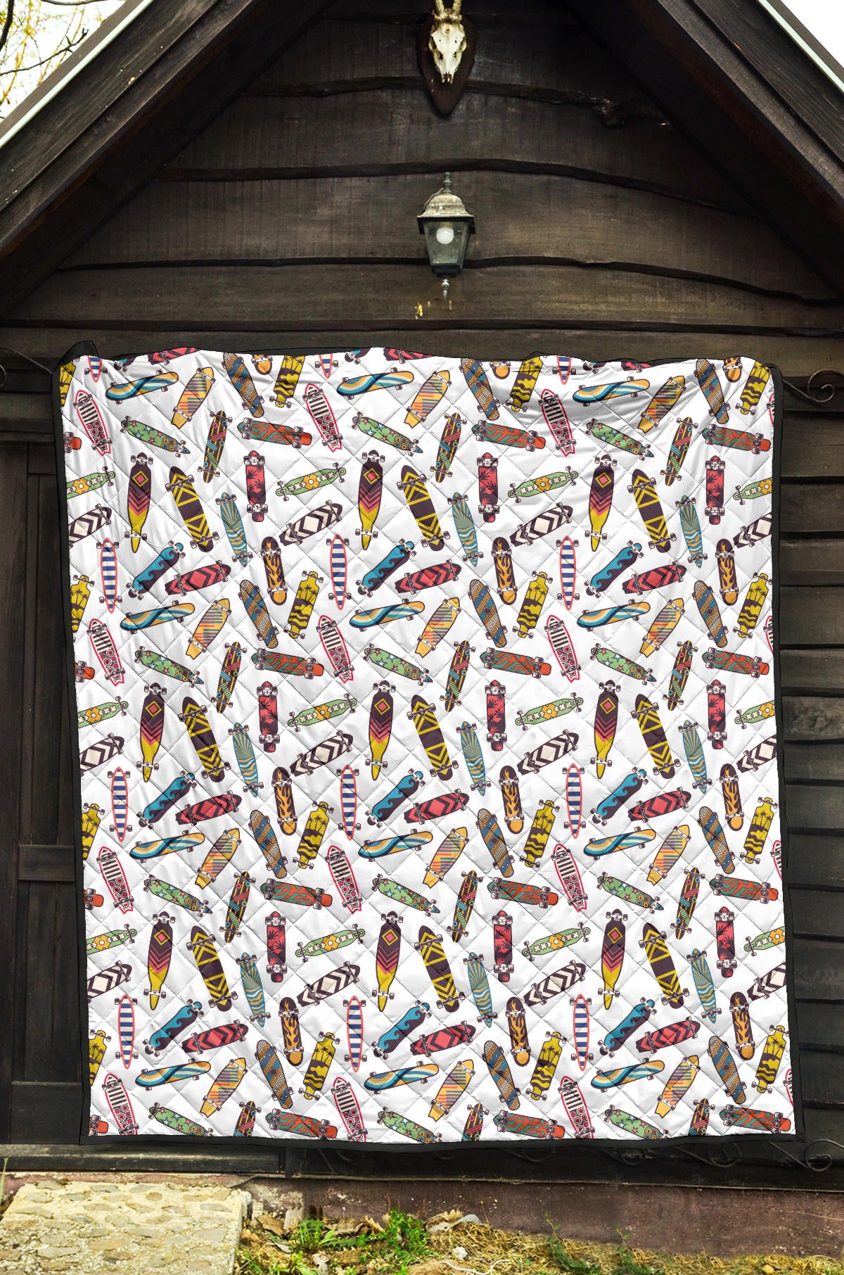 Skate Board Pattern Print Design 05 Premium Quilt is a uniqued design and limited item. It made to order, hand printed, and sewn with love in our factory.