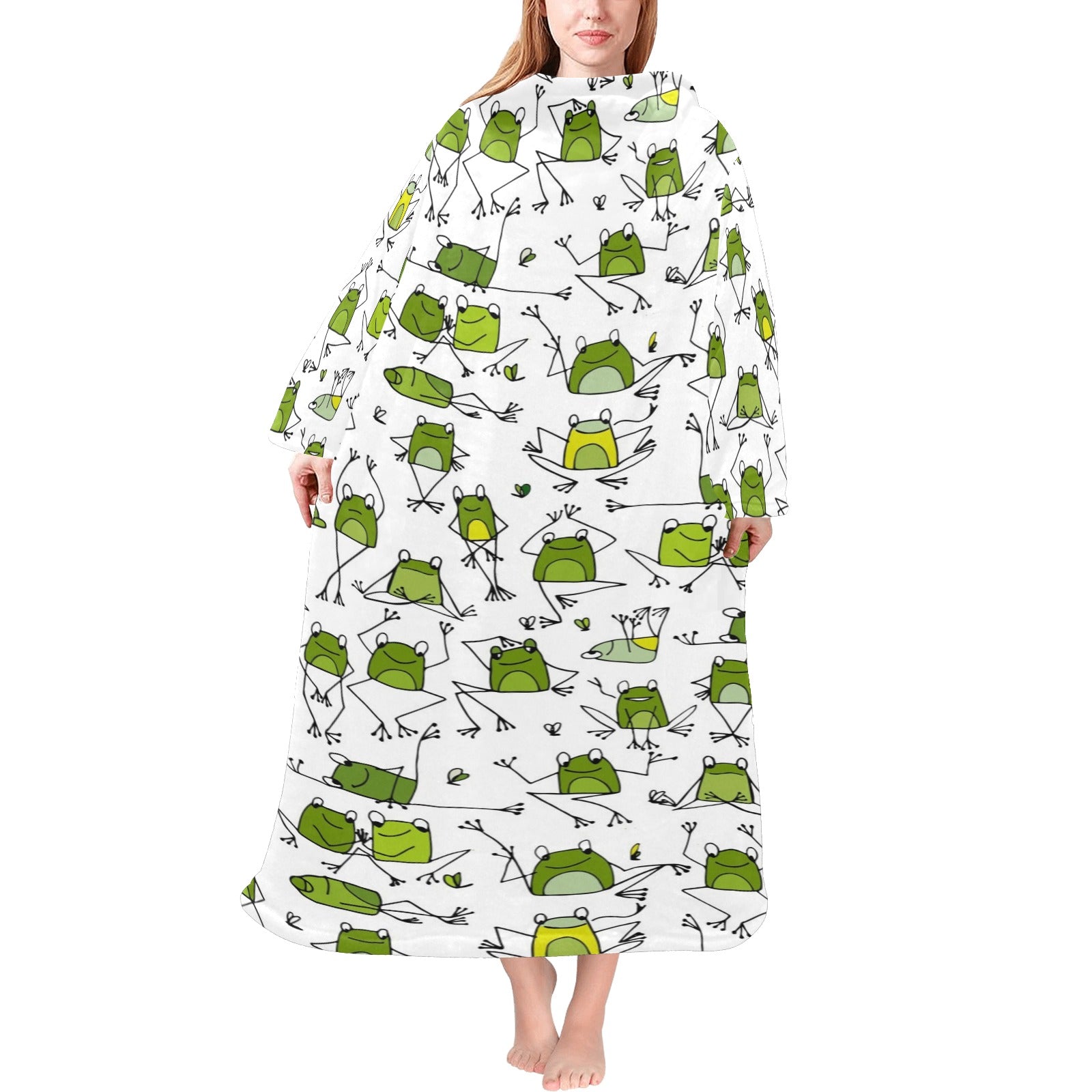 Sketch funny frog pattern Blanket Robe with Sleeves