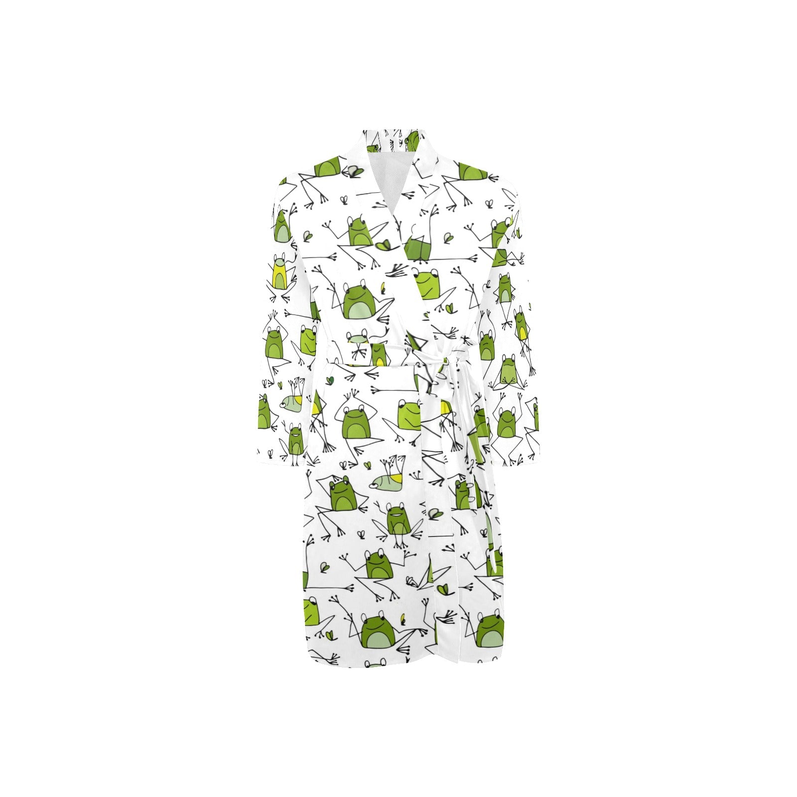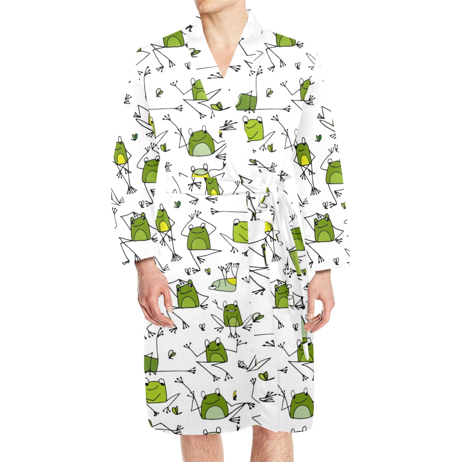Sketch funny frog pattern Men's Long Sleeve Belted Night Robe