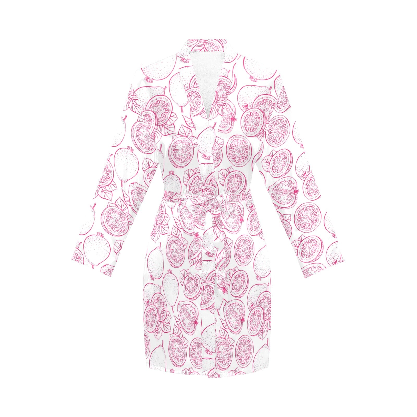 Sketch guava pattern Women's Long Sleeve Belted Night Robe