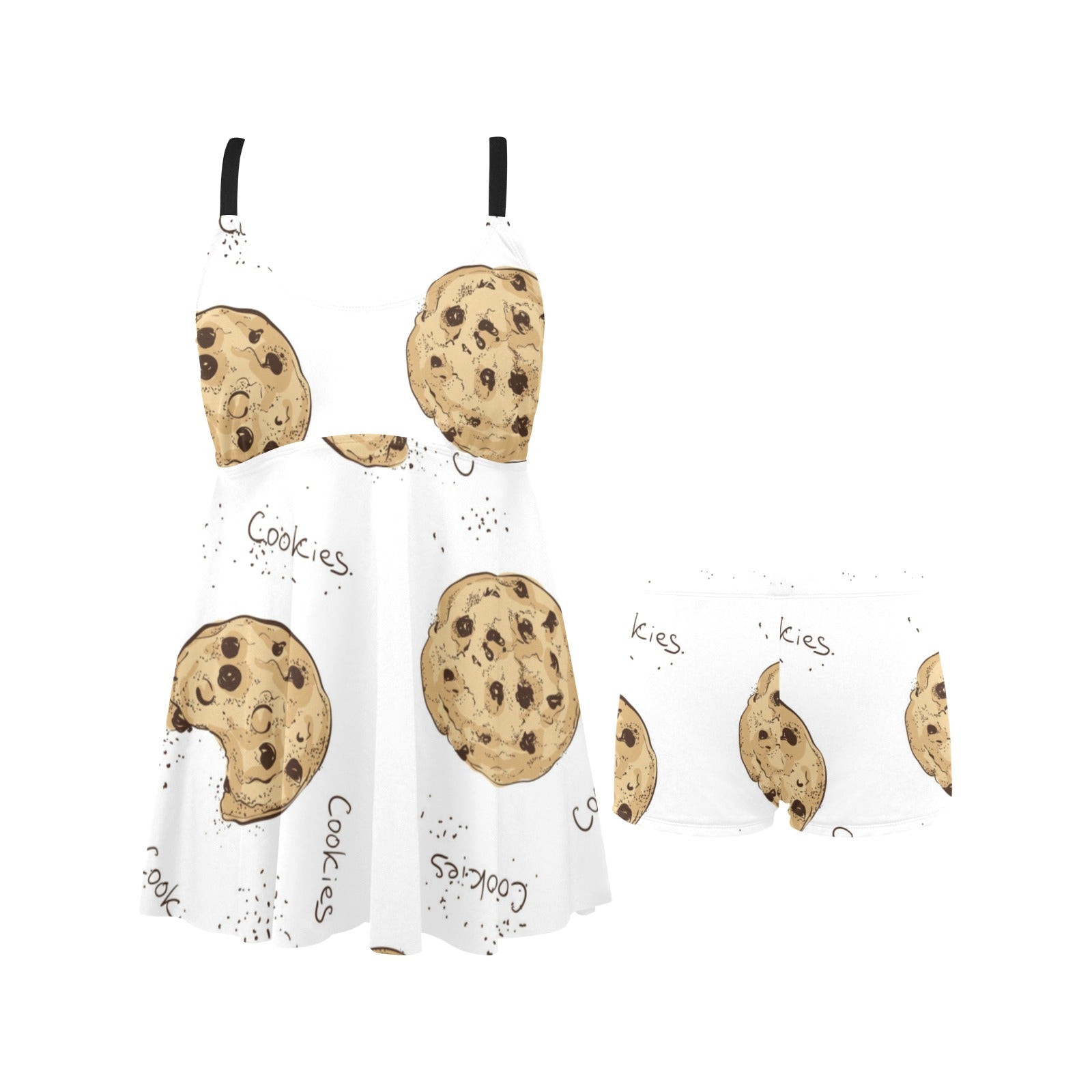 Sketch style cookie pattern Chest Sexy Pleated Two Piece Swim Dress