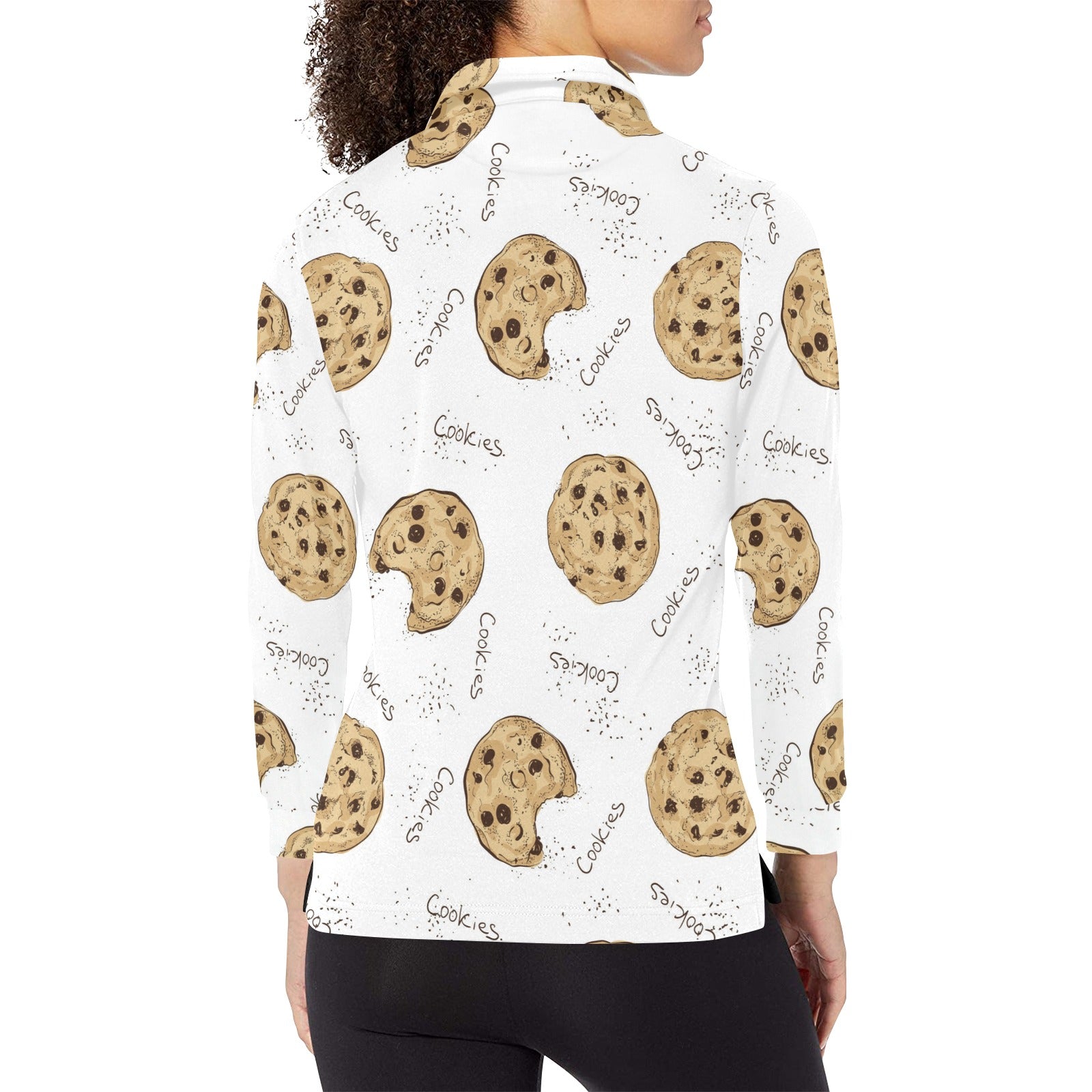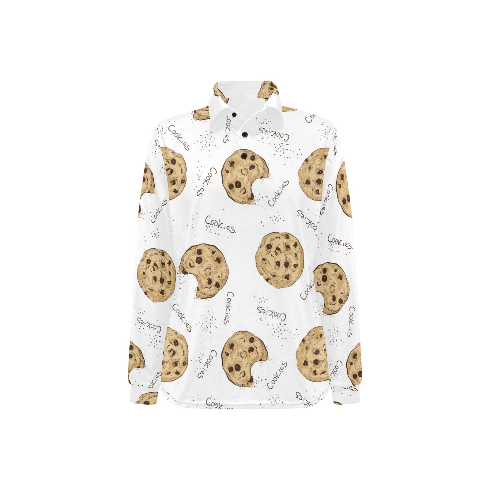 Sketch style cookie pattern Women's Long Sleeve Polo Shirt