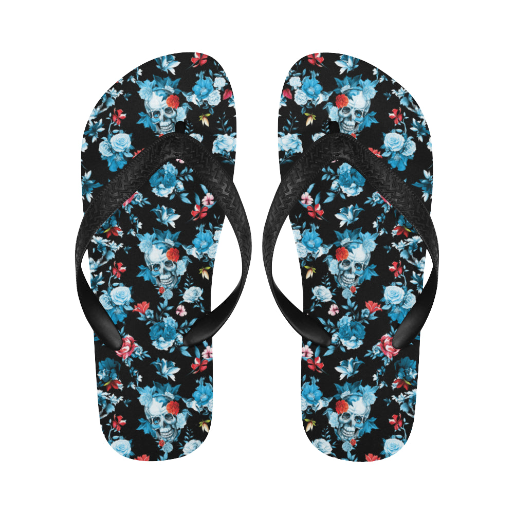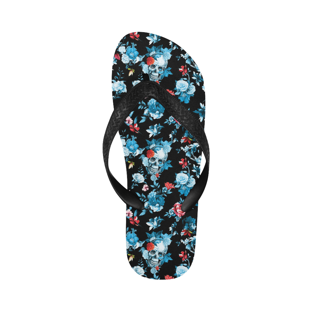 Skull flower roses leave pattern Unisex Flip Flops is a uniqued design and limited item. It made to order, hand printed, and sewn with love in our factory.