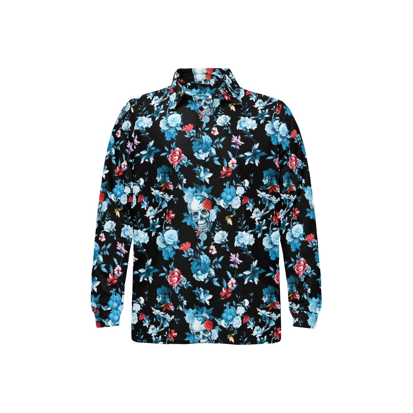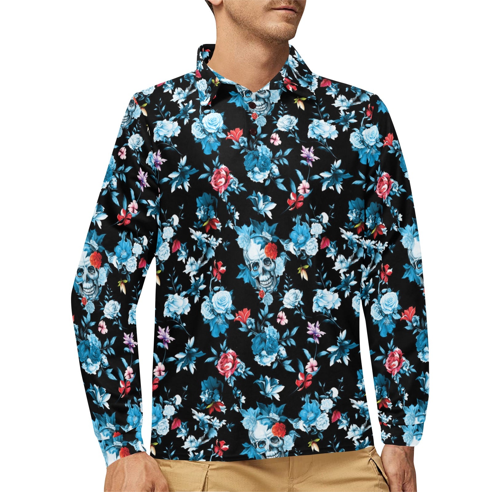 Skull flower roses leave pattern Men's Long Sleeve Polo Shirt