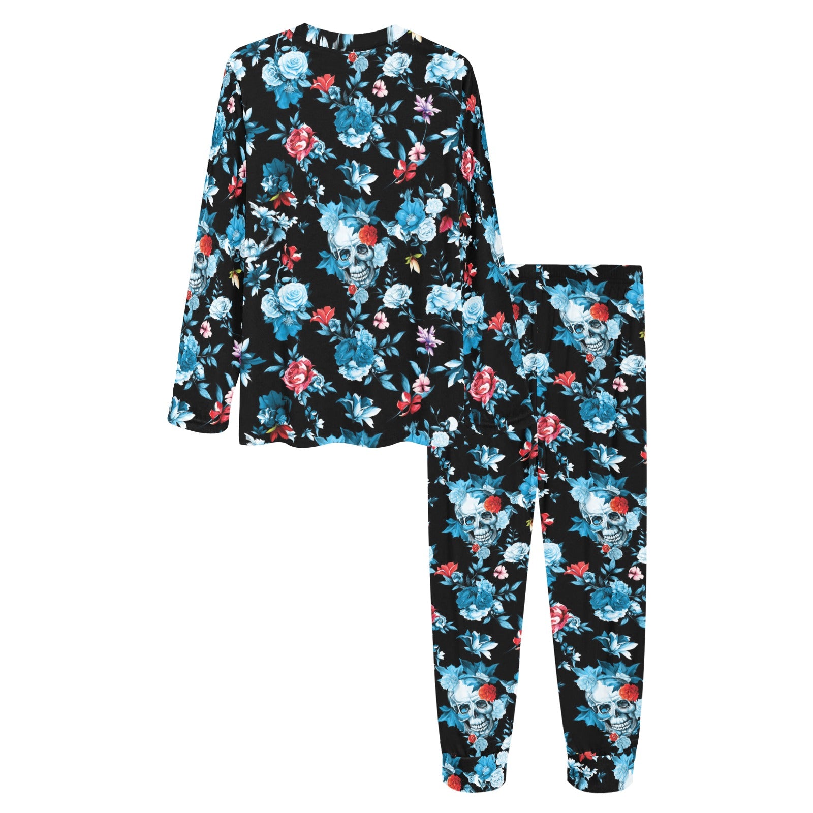 Skull flower roses leave pattern Women's All Over Print Pajama Set