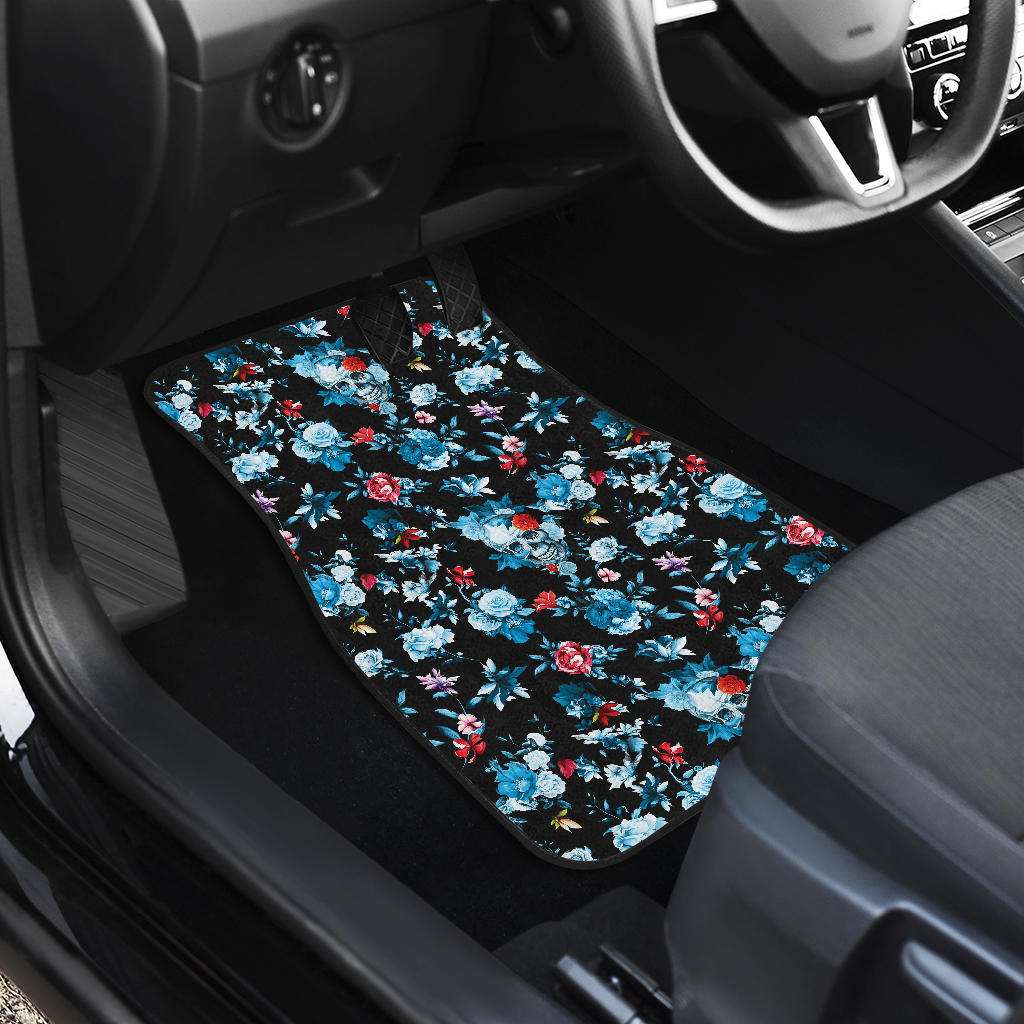 Skull Flower Roses Leave Pattern Front Car Mats