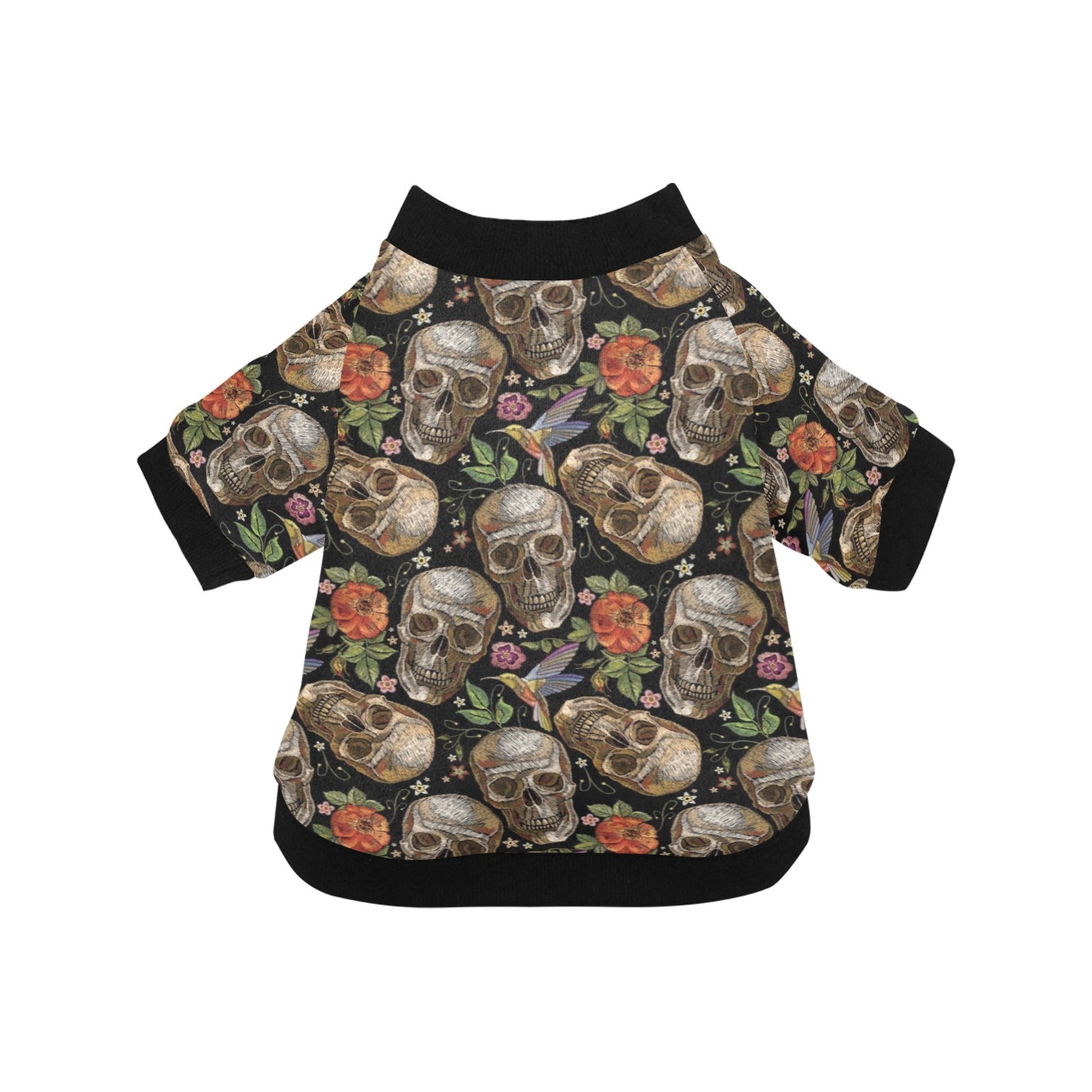Skull rose humming bird flower pattern All Over Print Pet Dog Round Neck Fuzzy Shirt