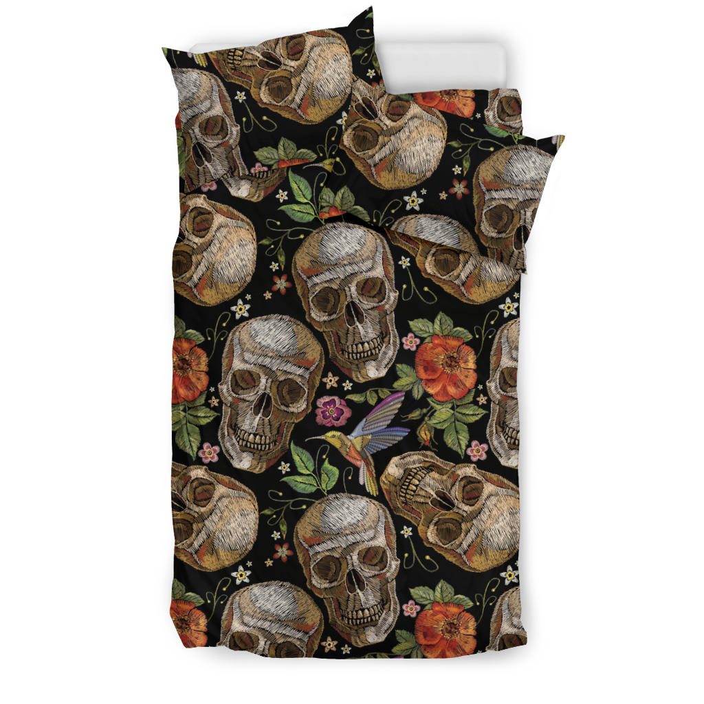 Skull Rose Humming Bird Flower Pattern Bedding Set