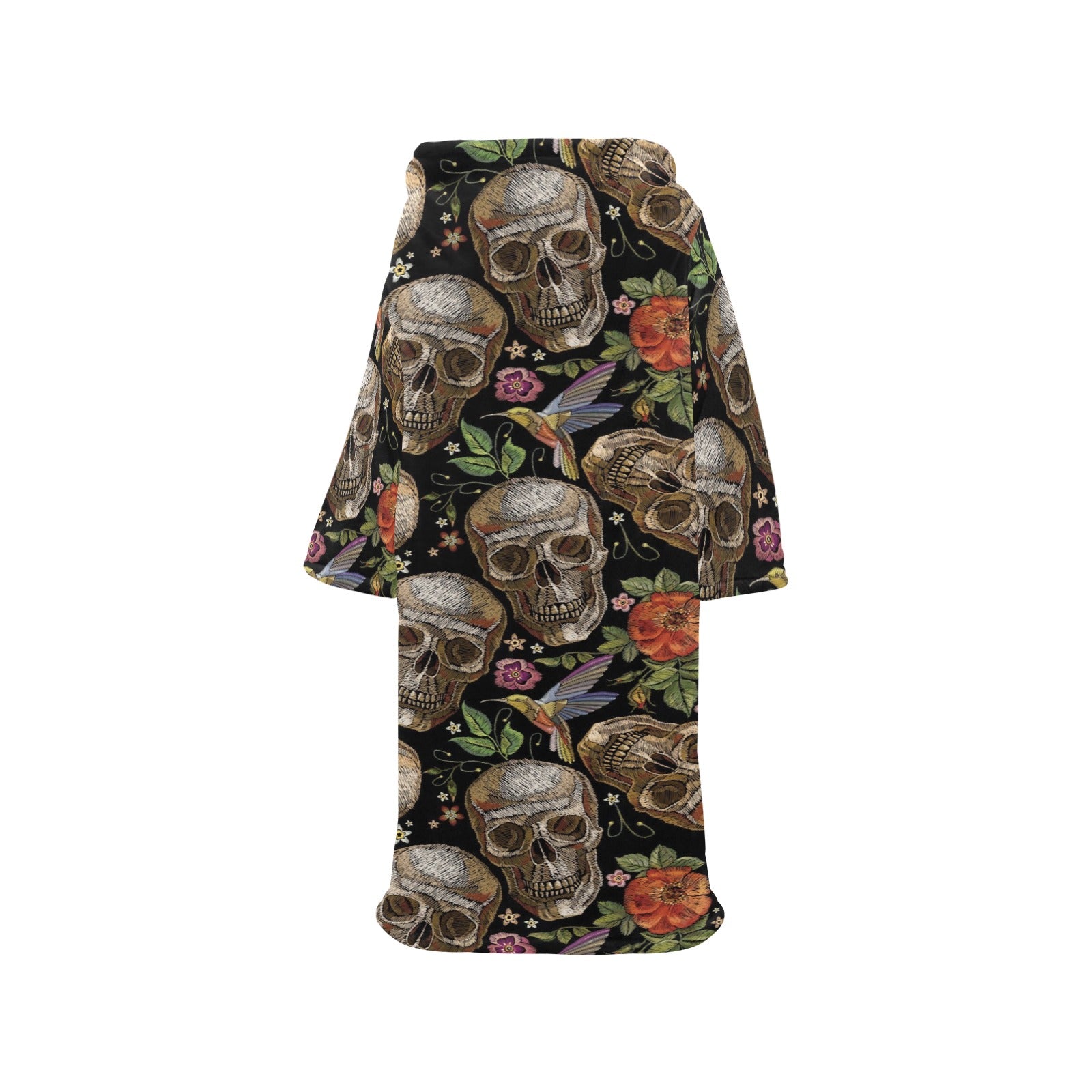 Skull rose humming bird flower pattern Blanket Robe with Sleeves