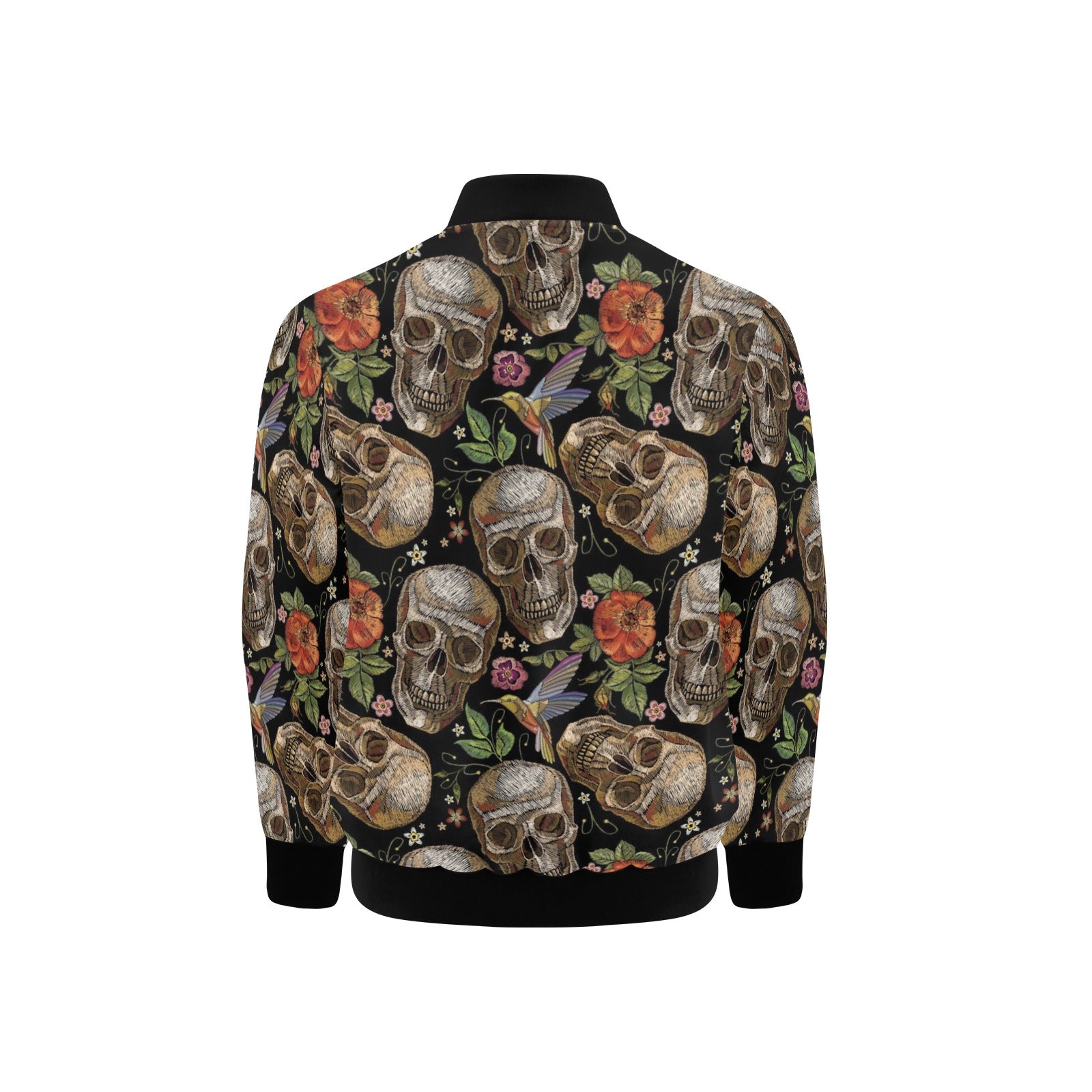 Skull rose humming bird flower pattern Kids' Boys' Girls' Bomber Jacket