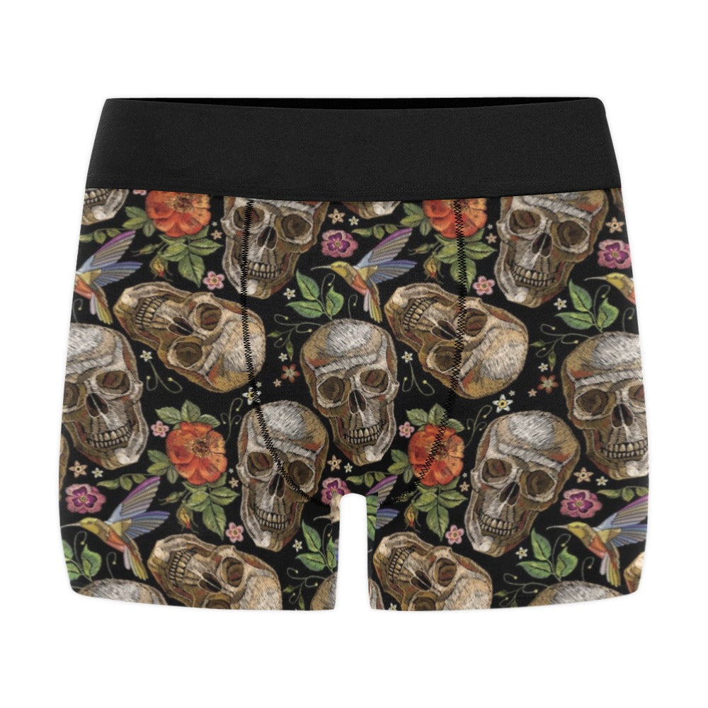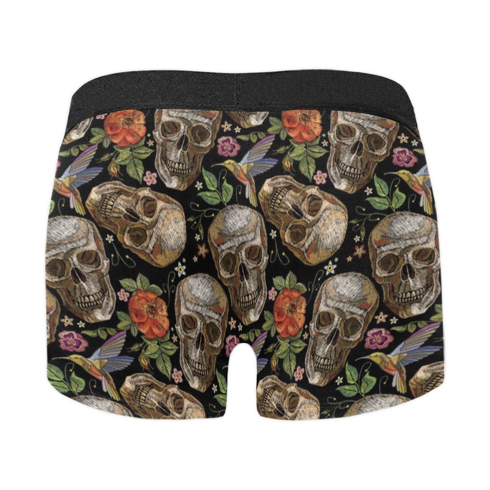 Skull rose humming bird flower pattern Men's All Over Print Boxer Briefs Men's Underwear