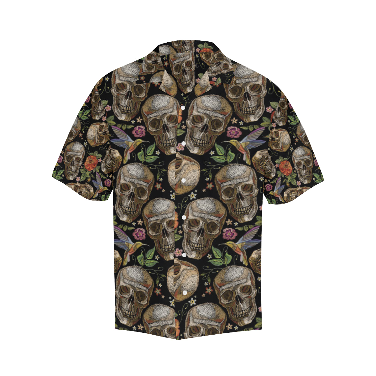 Skull rose humming bird flower pattern Men's All Over Print Hawaiian Shirt is a uniqued design and limited item. It made to order, hand printed, and sewn with love in our factory.