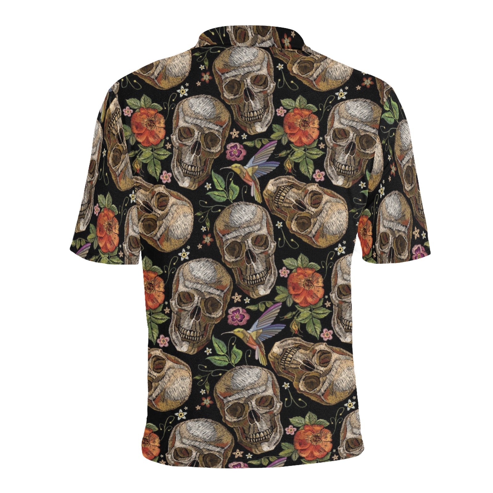 Skull rose humming bird flower pattern Men's All Over Print Polo Shirt