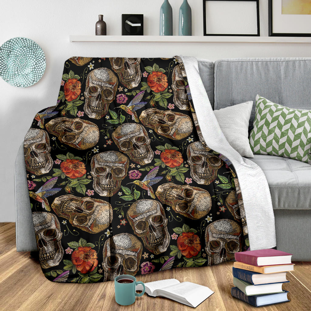 Skull rose humming bird flower pattern Premium Blanket is a uniqued design and limited item. It made to order, hand printed, and sewn with love in our factory.