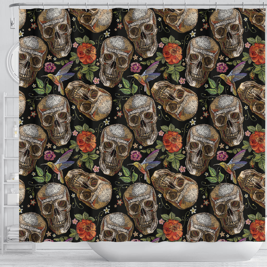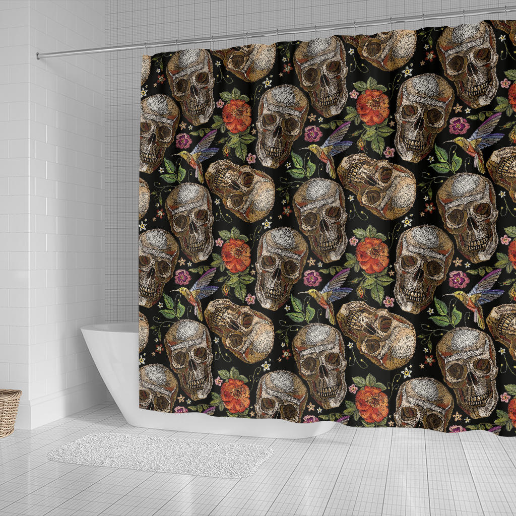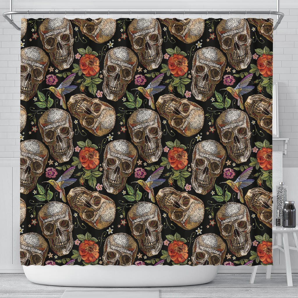Skull Rose Humming Bird Flower Pattern Shower Curtain Fulfilled In US