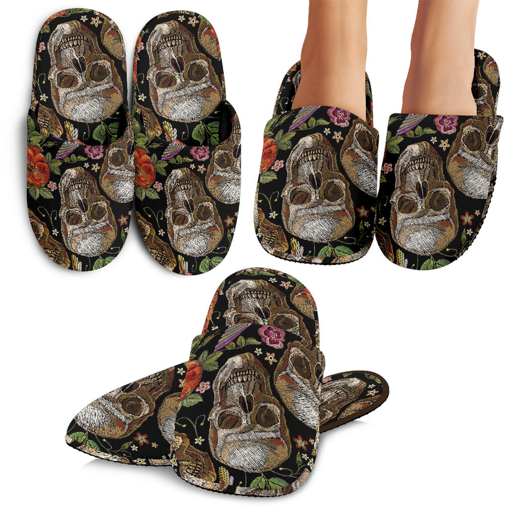 Skull Rose Humming Bird Flower Pattern Slippers