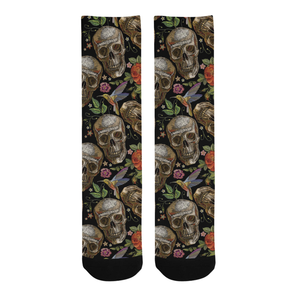 Skull rose humming bird flower pattern Crew Socks are uniqued design and limited item. It made to order, hand printed, and sewn with love in our factory.