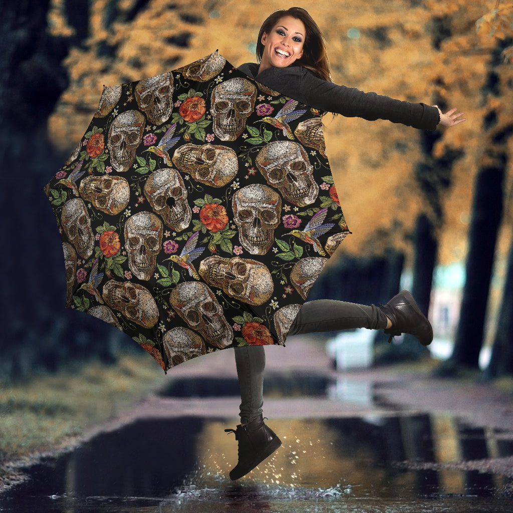 Skull Rose Humming Bird Flower Pattern Umbrella