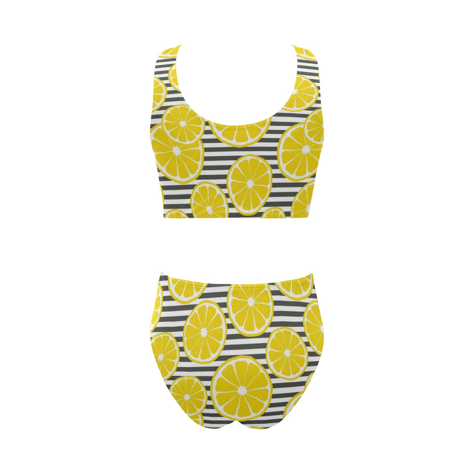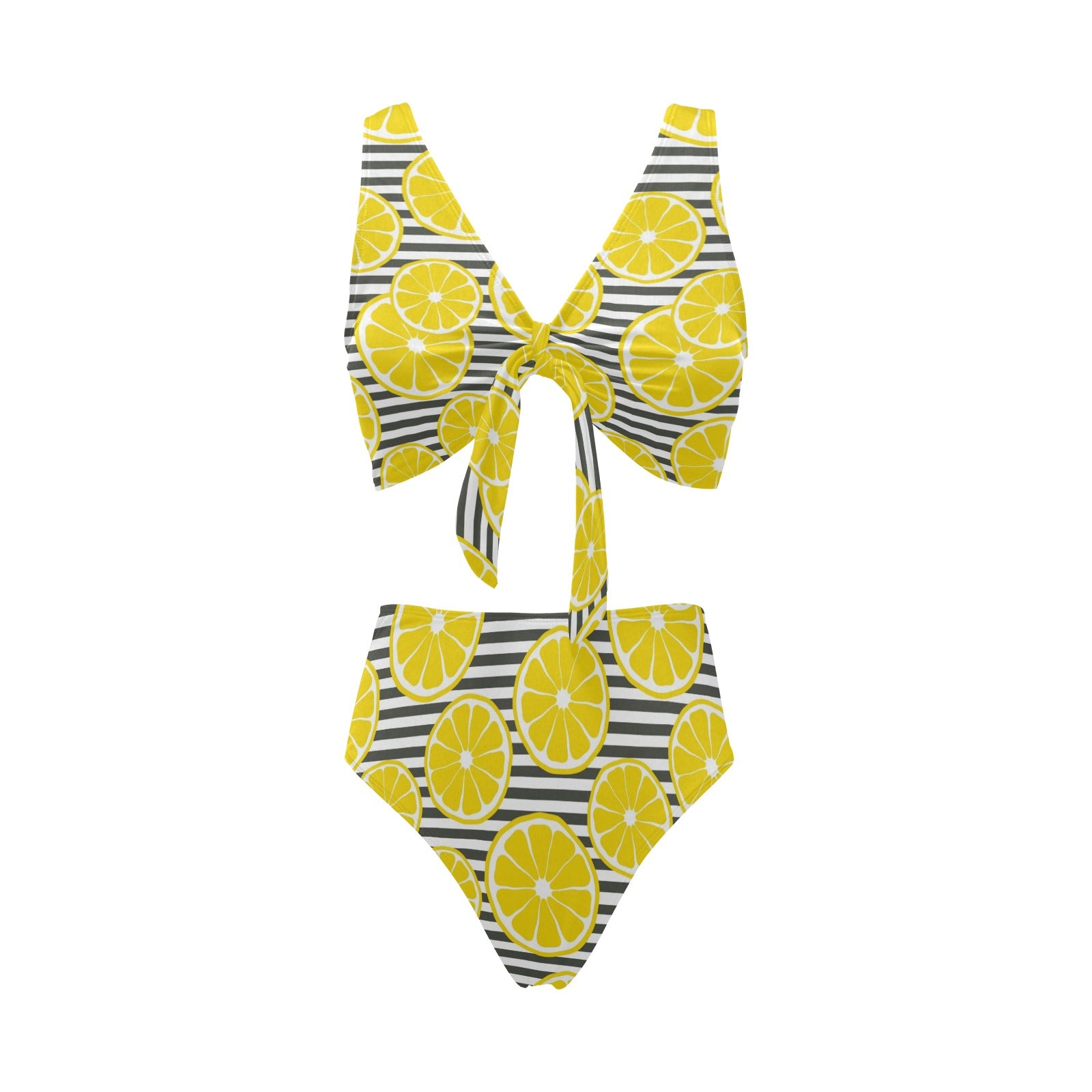 slice of lemon design pattern Chest Bowknot High Waisted Bikini Swimsuit