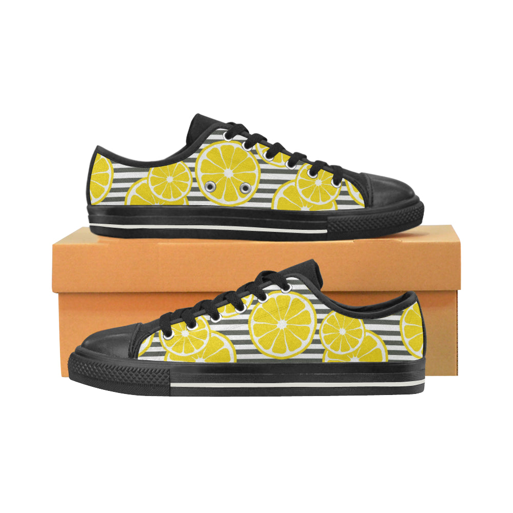 slice of lemon design pattern Men's Low Top Canvas Shoes Black