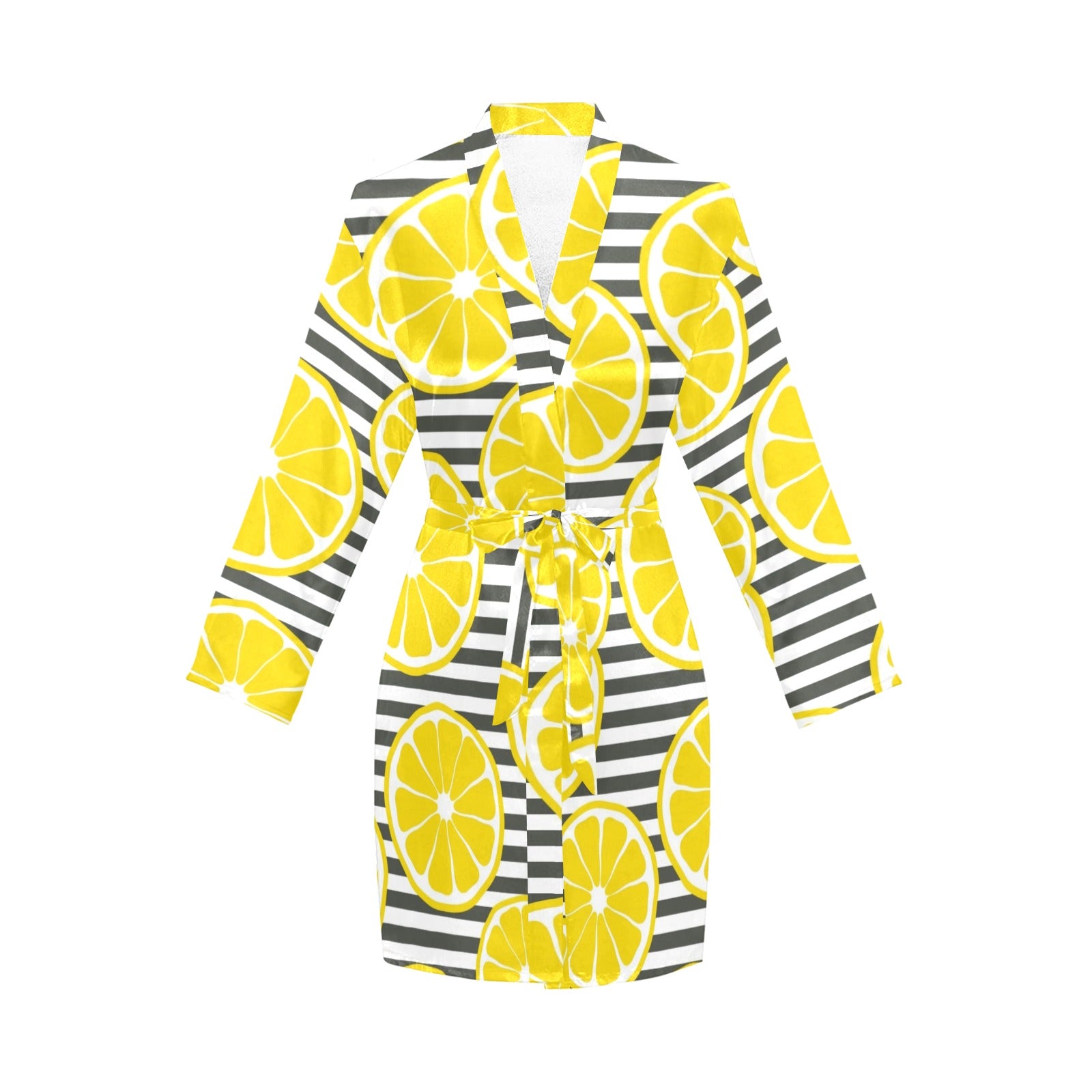 slice of lemon design pattern Women's Long Sleeve Belted Night Robe