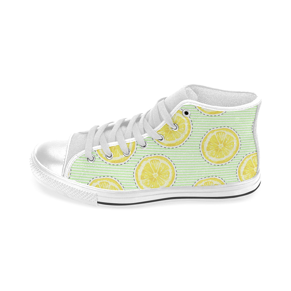 slice of lemon pattern Men's High Top Canvas Shoes White