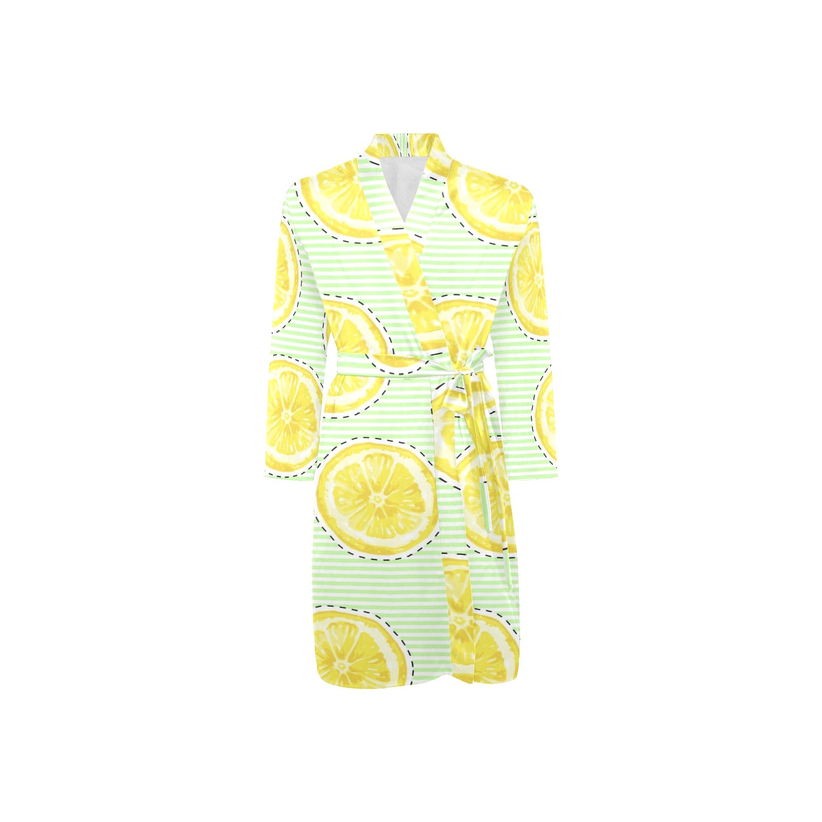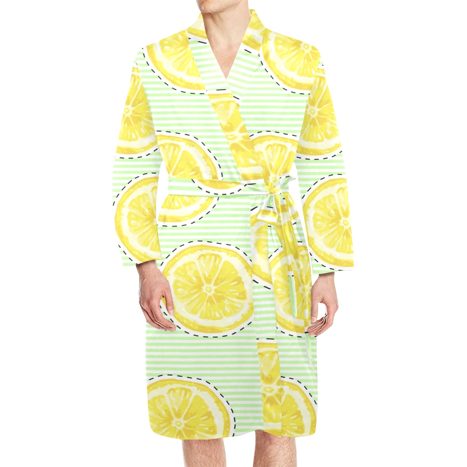 slice of lemon pattern Men's Long Sleeve Belted Night Robe