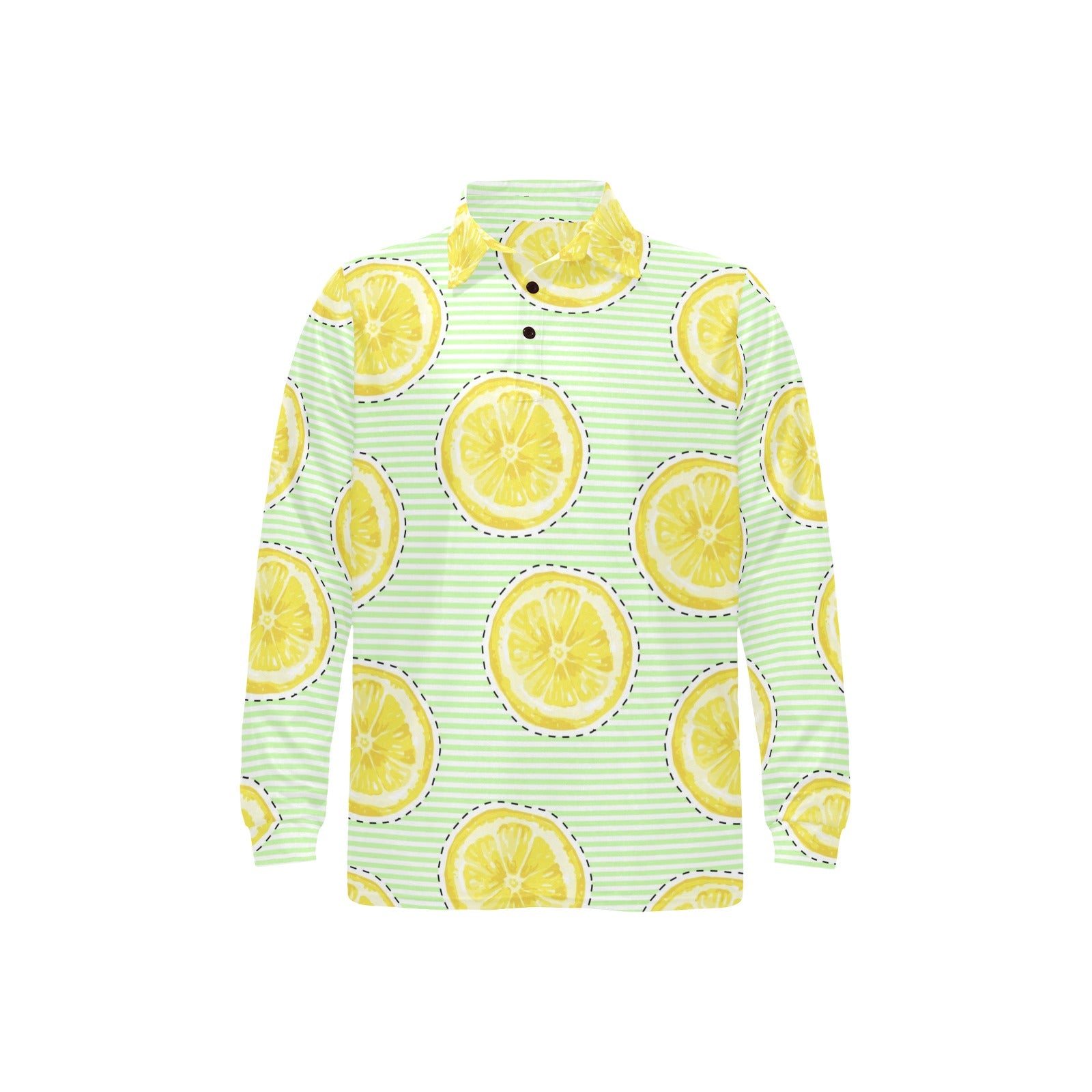 slice of lemon pattern Men's Long Sleeve Polo Shirt