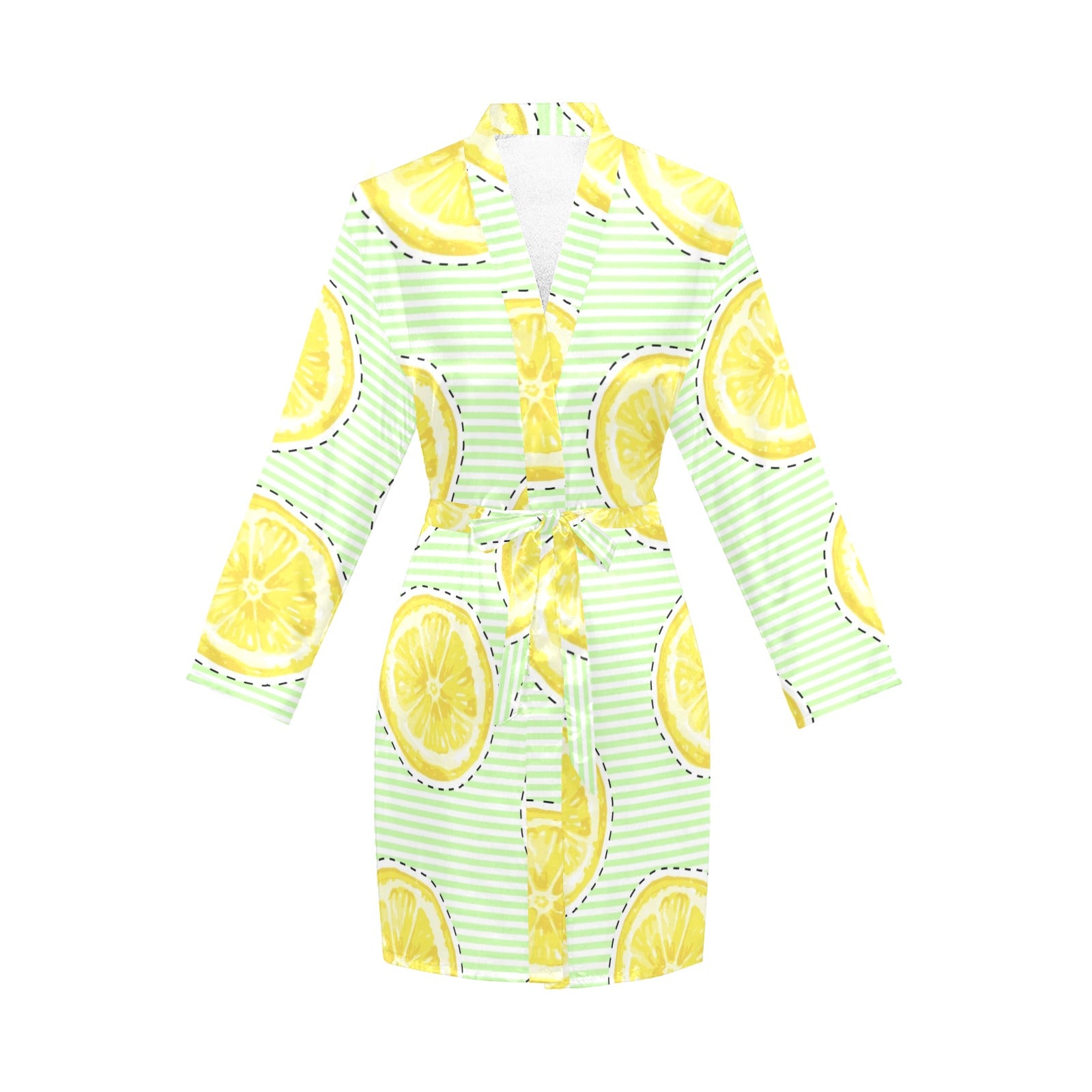 slice of lemon pattern Women's Long Sleeve Belted Night Robe